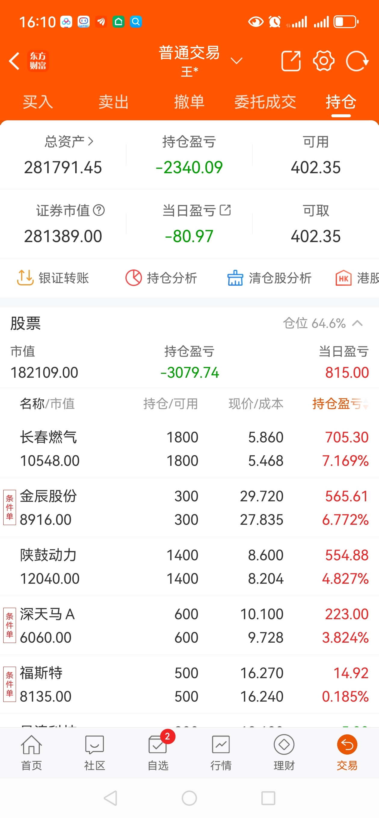 今天亏损80元