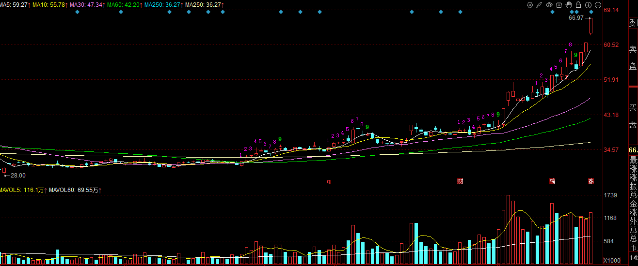 云南铜业000878:早盘大幅高开之后快速封住了涨停,有色板块在周四迎来了涨停潮,周五是分化的预期,只有龙头才能走出较好的持续性。云南铜业有成为龙头的潜质,周五依然还是继续涨停的预期,只是短期来看现在没有较好的介入点。