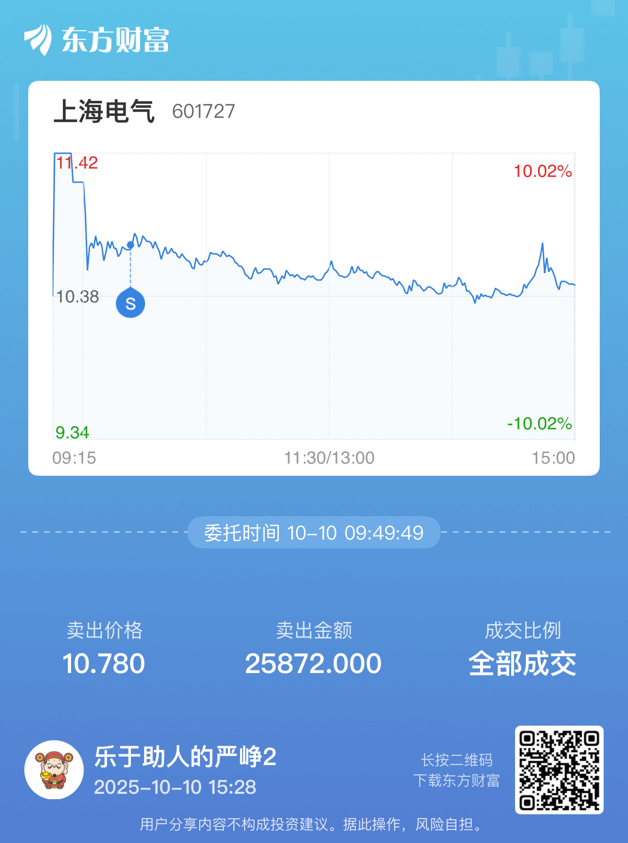 $上海电气(SH601727)$ 卖了一部分 不知道怎么样
