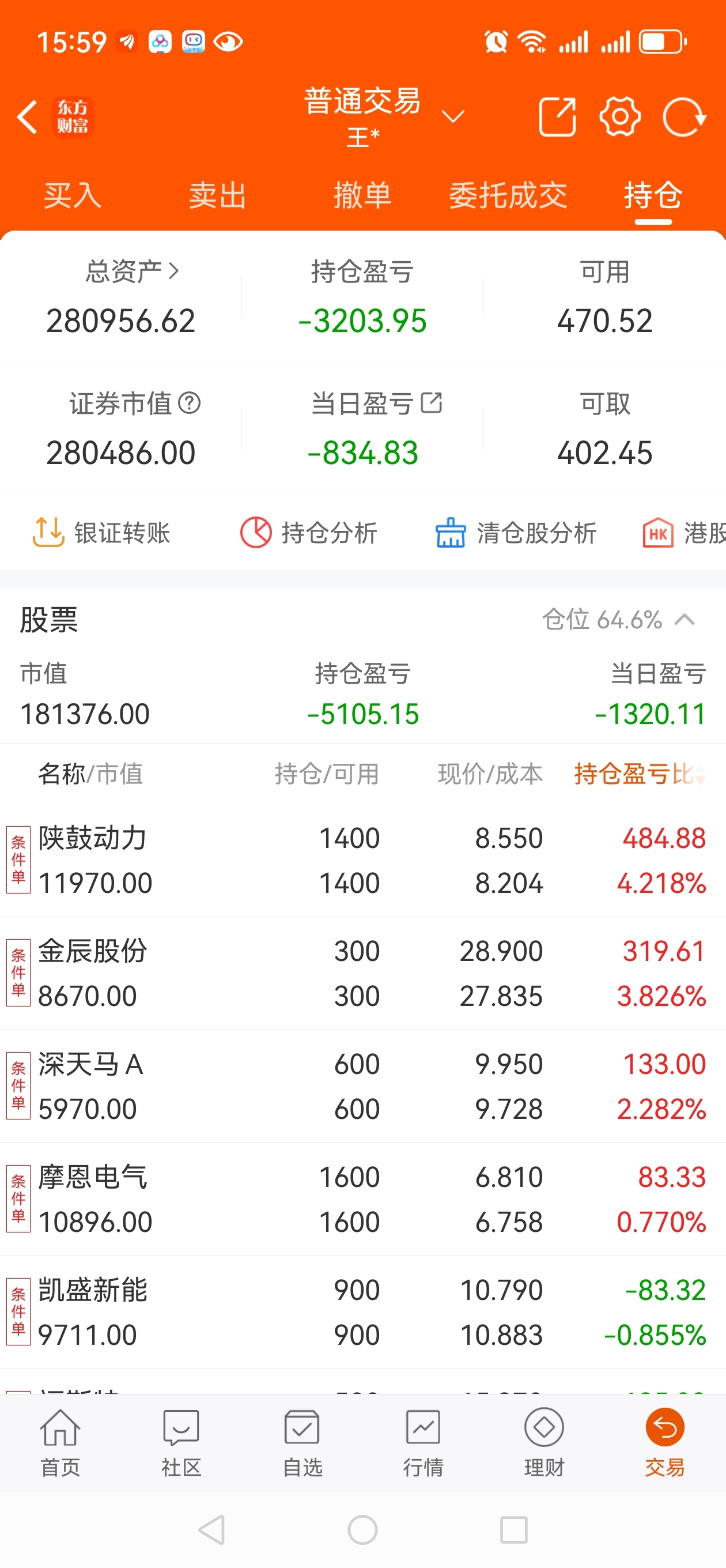 今天亏损834元,涨的时候不涨,跌的时候没少跌。