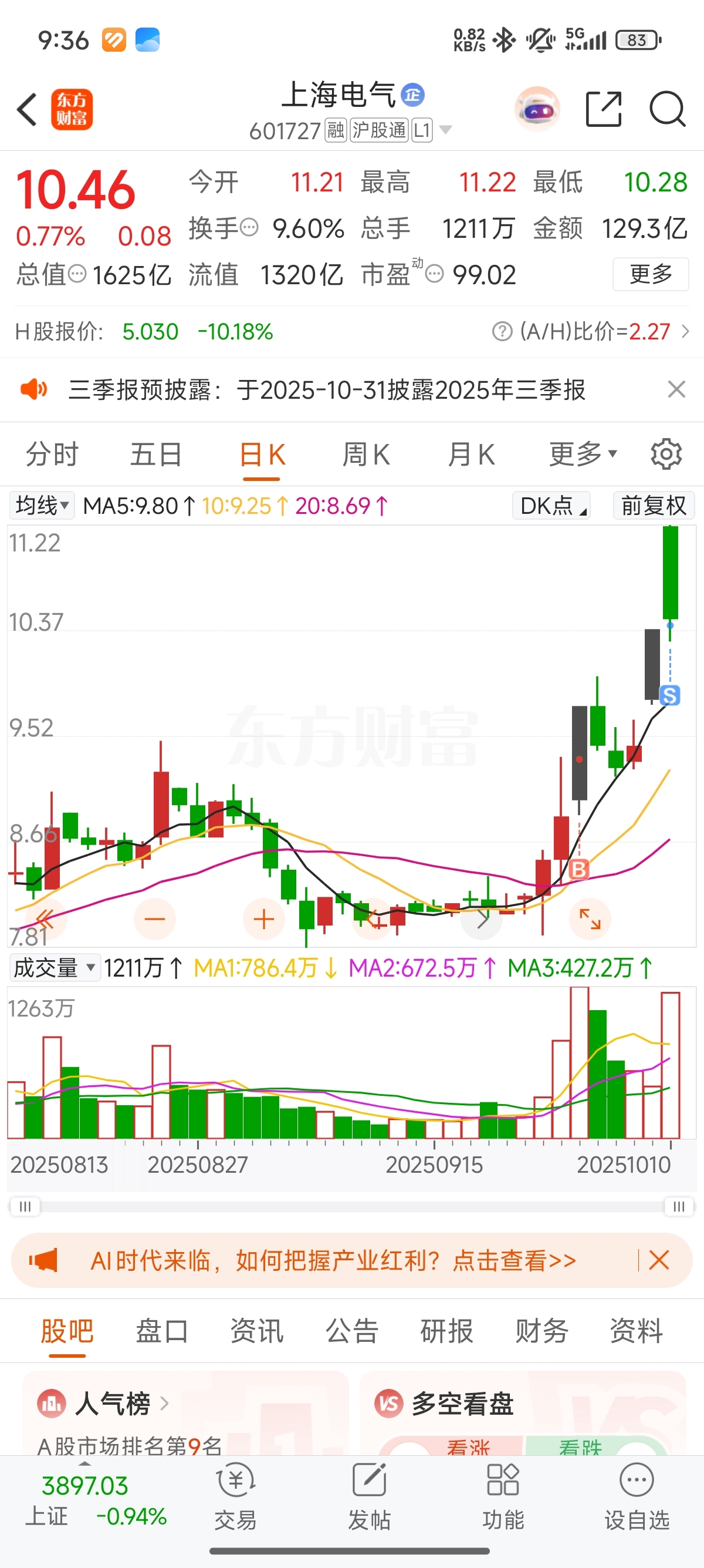 $上海电气(SH601727)$ 129亿压着,实在是难以相信会上涨,再看两天,短期避避