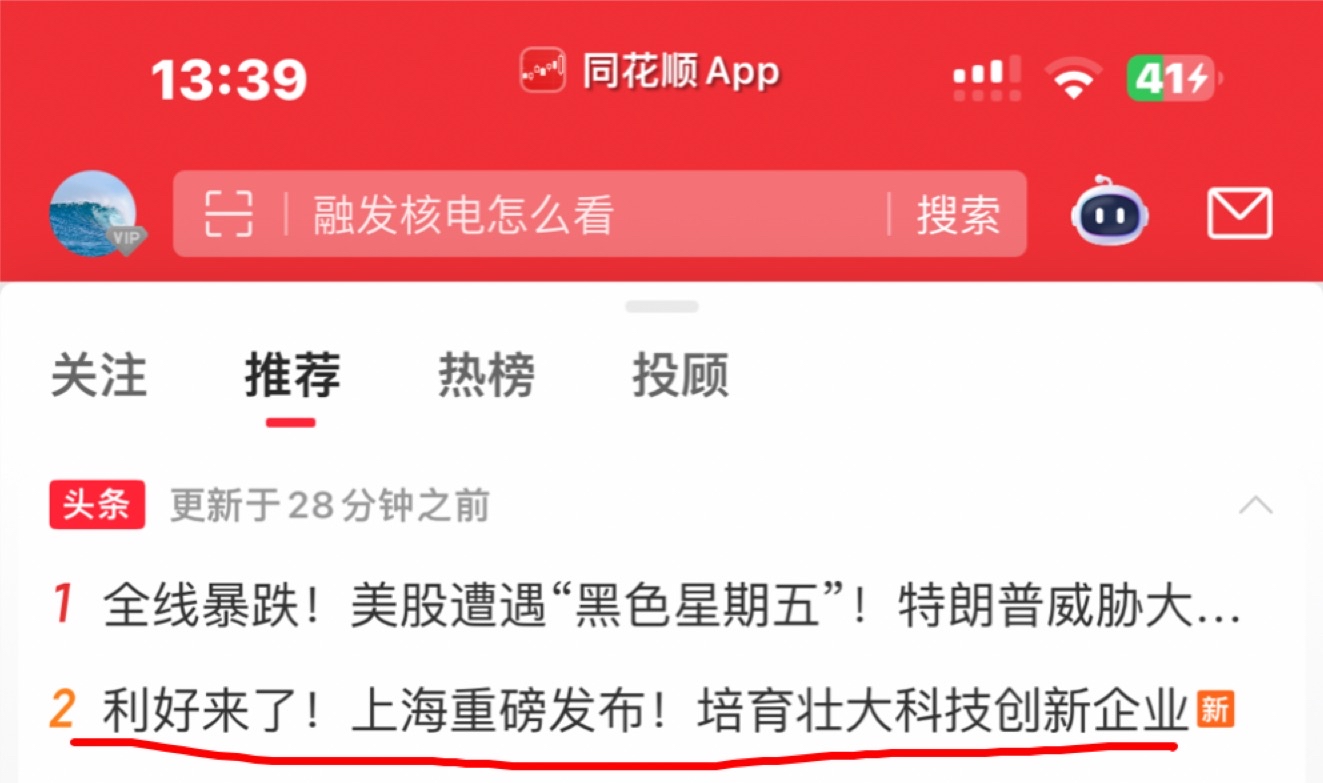 午间热搜;上海扶持科技创新企业。尤其可控核骤变