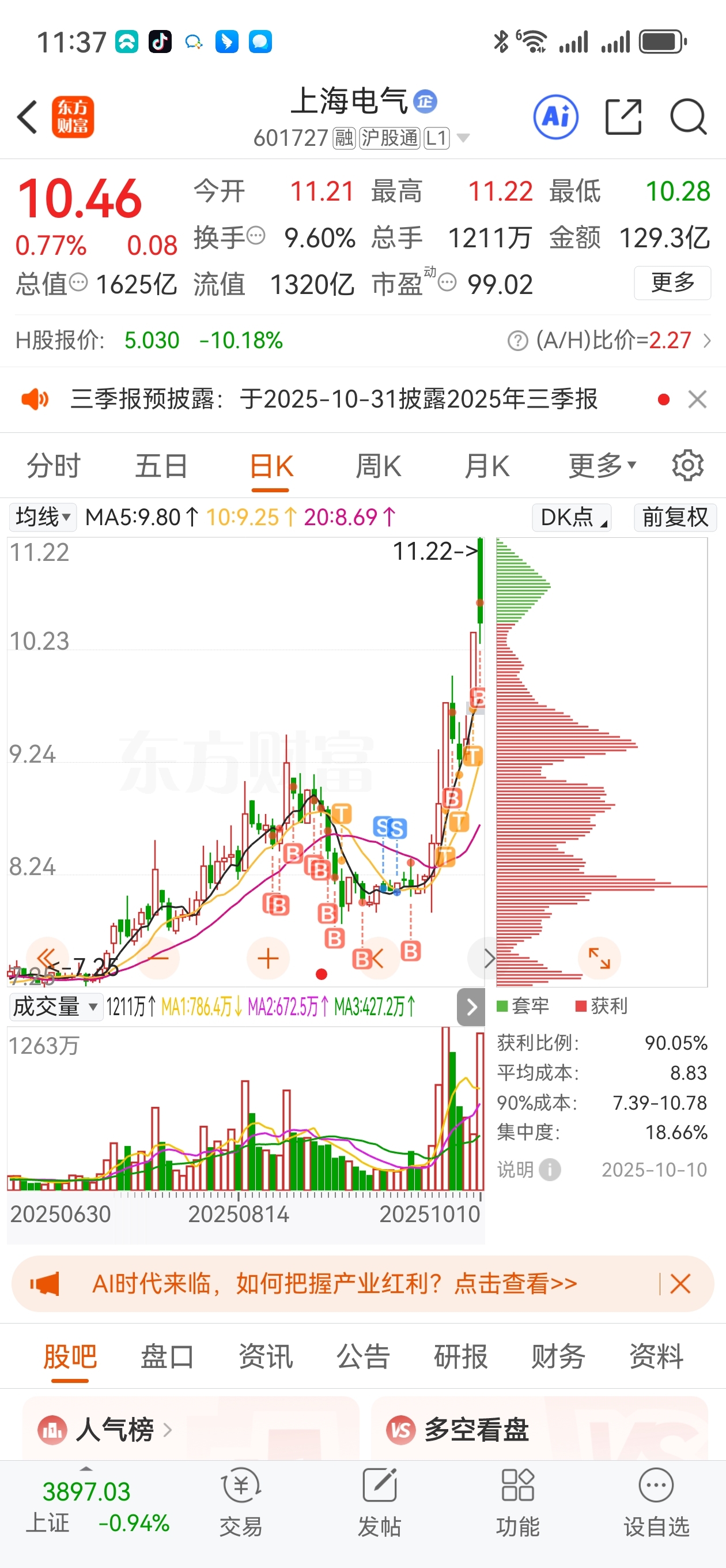 $上海电气(SH601727)$ 爬高都是苦命人,洗不走我,拿了快两个月,没利润我都拿的住,现在有大把利润。主力你压单也要成本我看你怎么赶走我。外界利空利好跟我没关系,不到13不走。