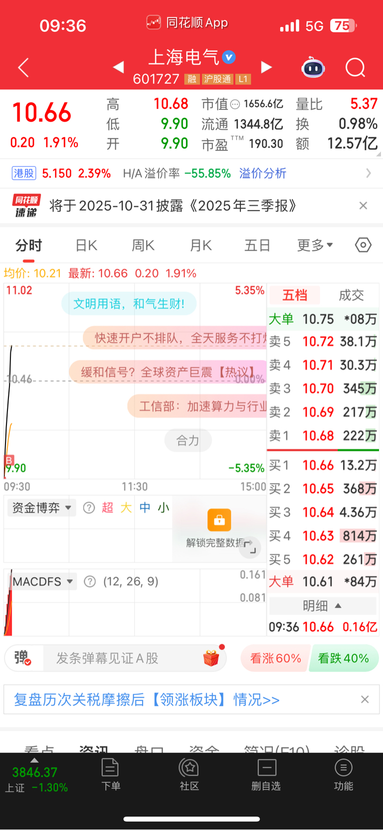 $上海电气(SH601727)$ 今天早盘加仓的都吃肉了吧