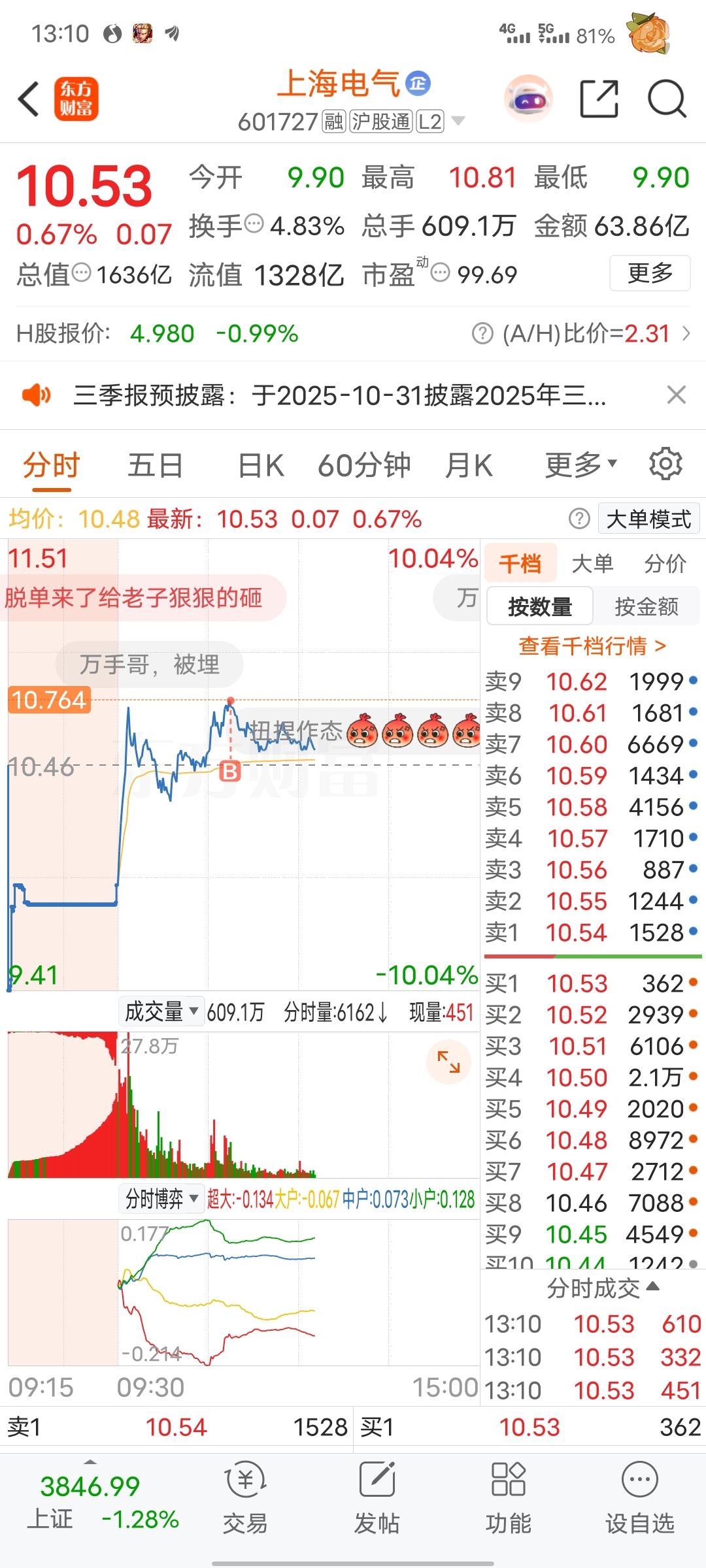 $上海电气(SH601727)$ 我才几个子啊,就把你压下来了,我寻思着我也没住白宫呀,我买了你就趴下了