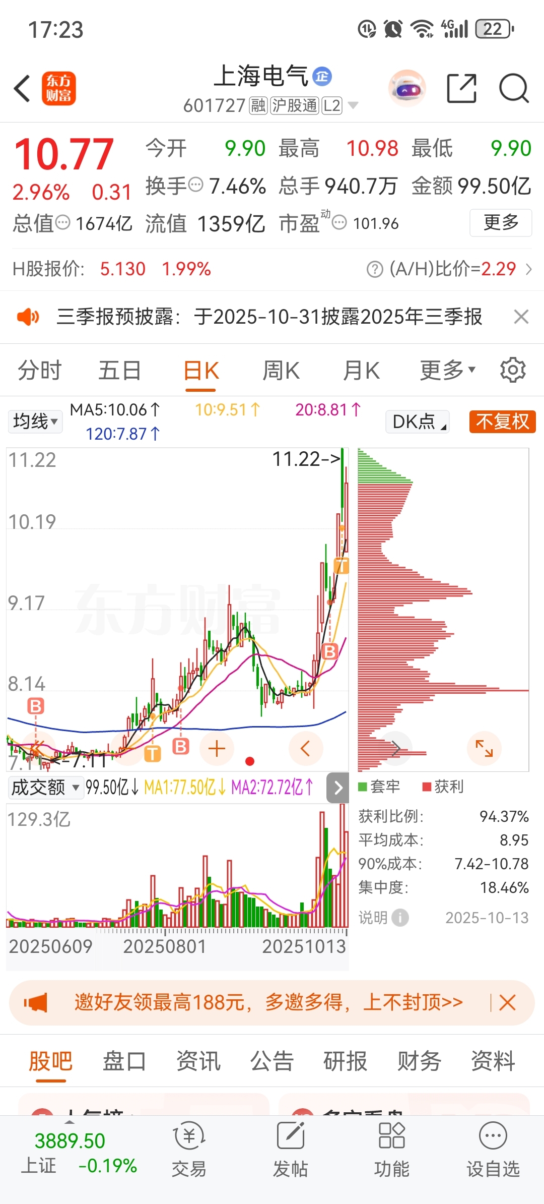 $上海电气(SH601727)$ 明天高开3个点,只有我这种忠实粉丝,才能吃大肉,打爆空狗,前天做T爽歪歪又多了点股,坚持看多,磊总牛逼啊,哈哈哈,