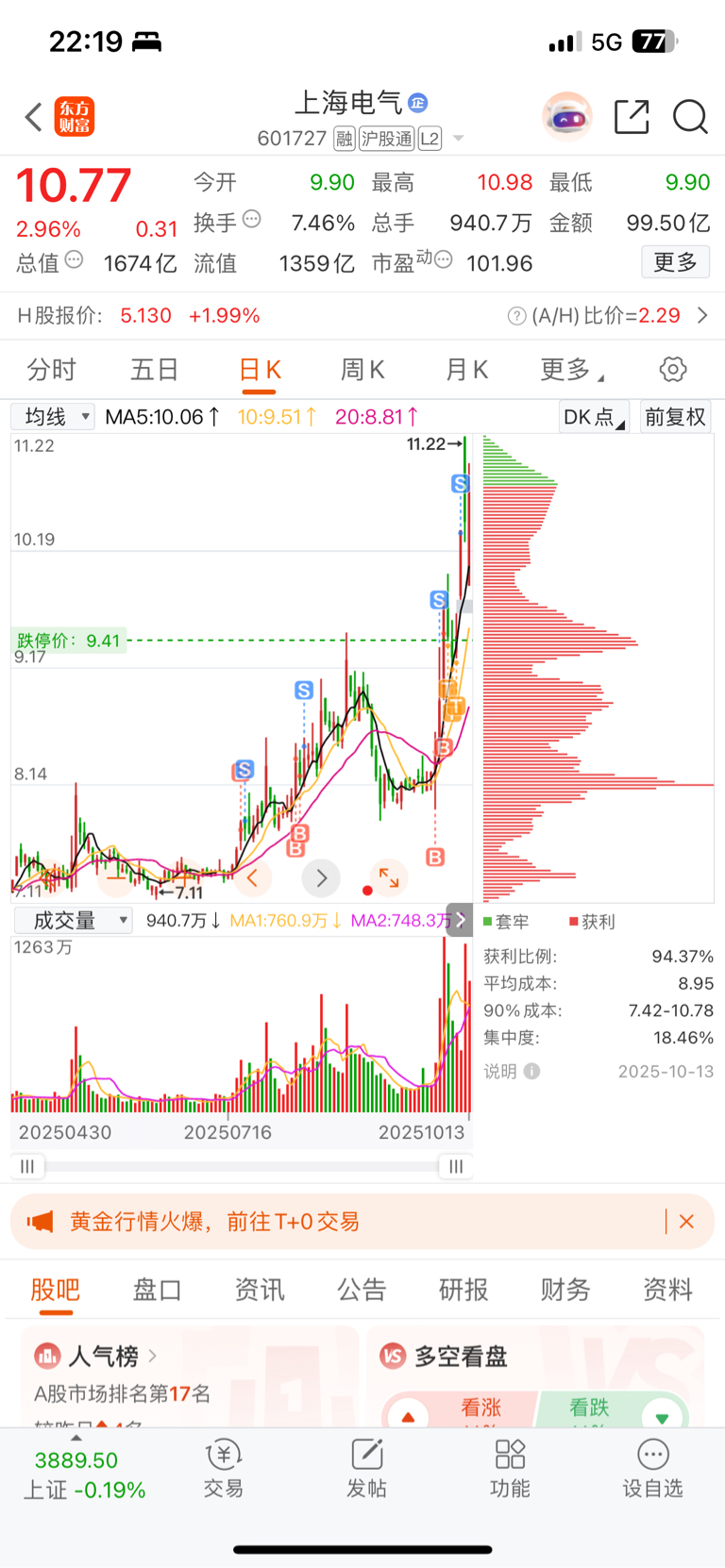 上海电气我天天卖飞,工业强国,不可能就这个价,至少3000亿市值吧我就想短期赚点