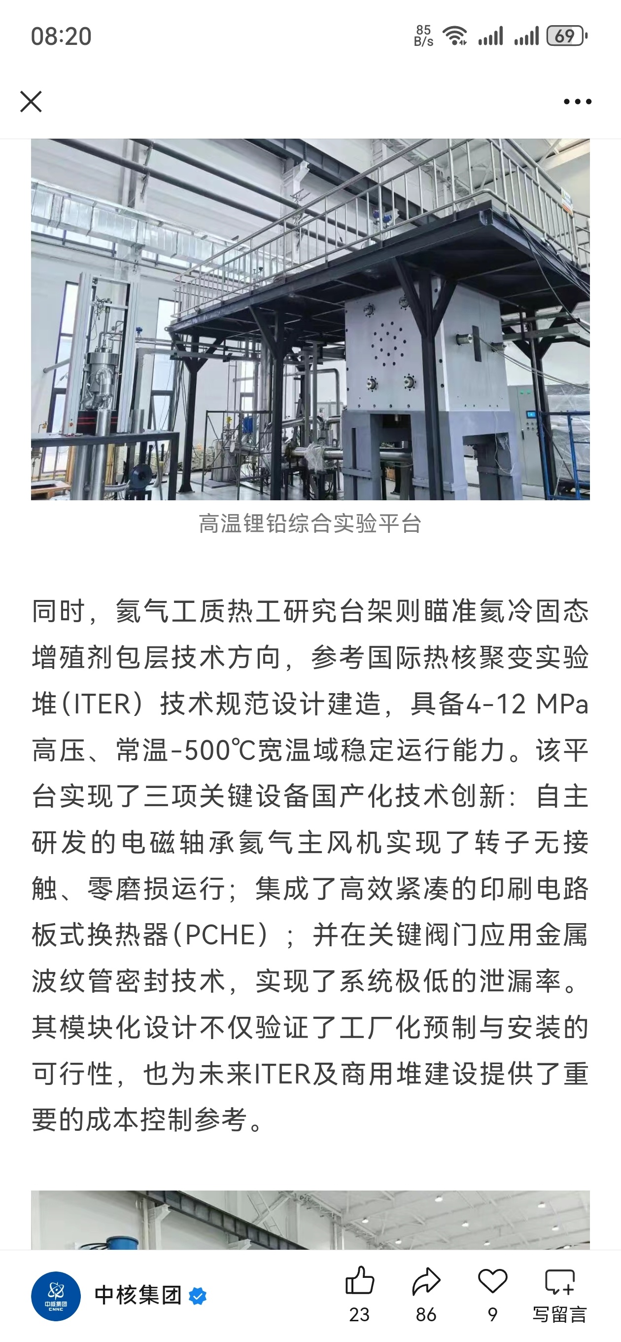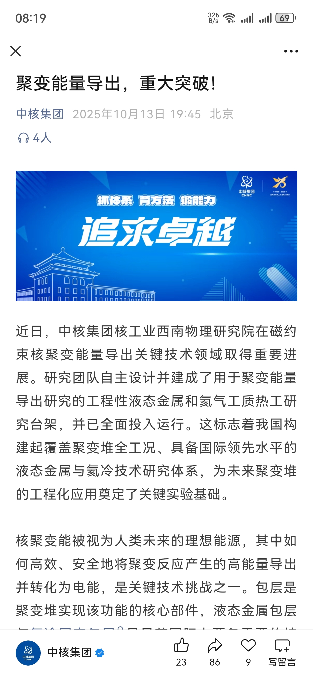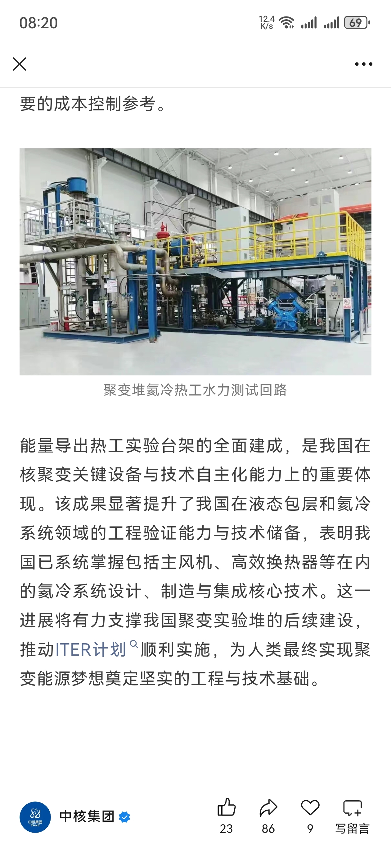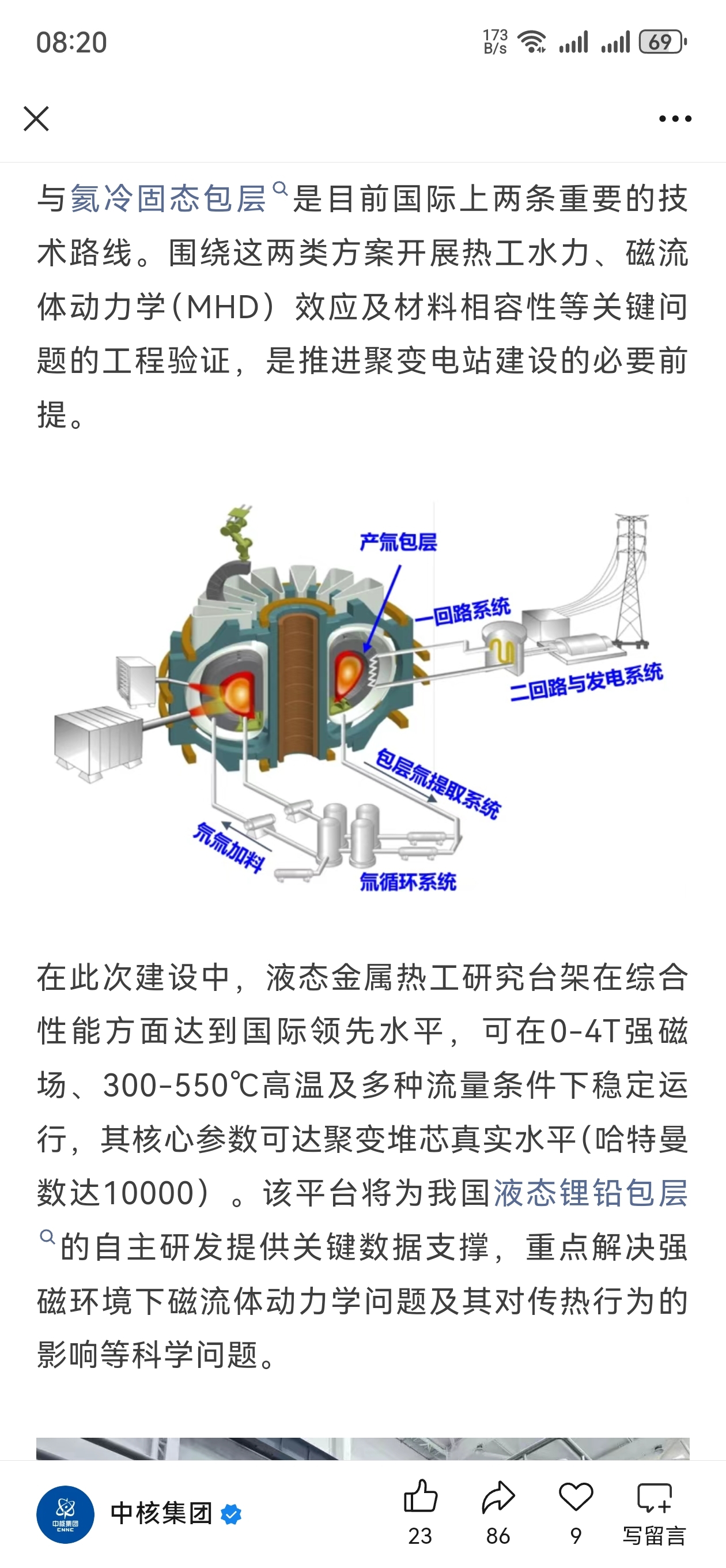 核聚变:13日据中核集团公众号,在磁约束核聚变能量导出关键技术领域取得重要进展,