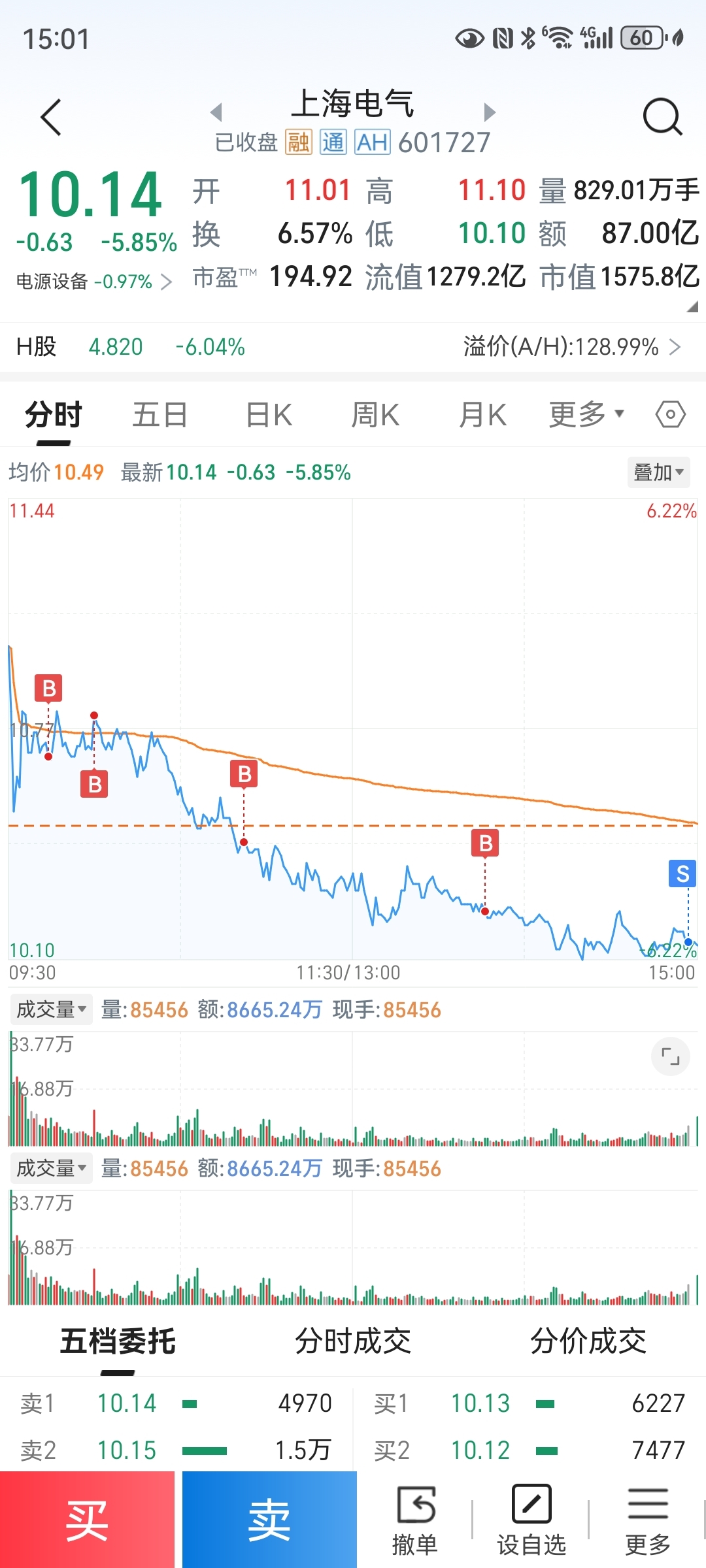 $上海电气(SH601727)$ 各位兄弟 亏麻了,反T王!昨天挣5000,现在倒亏1.4万