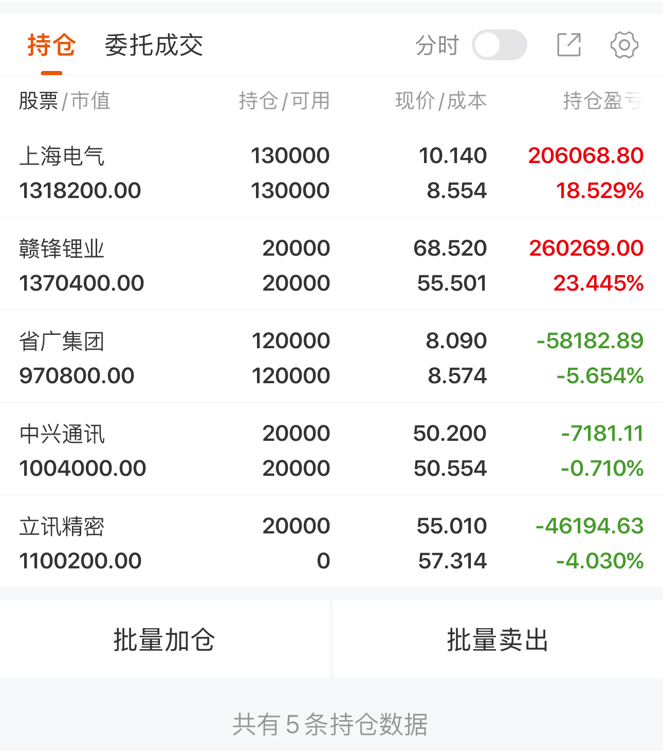 手中持仓