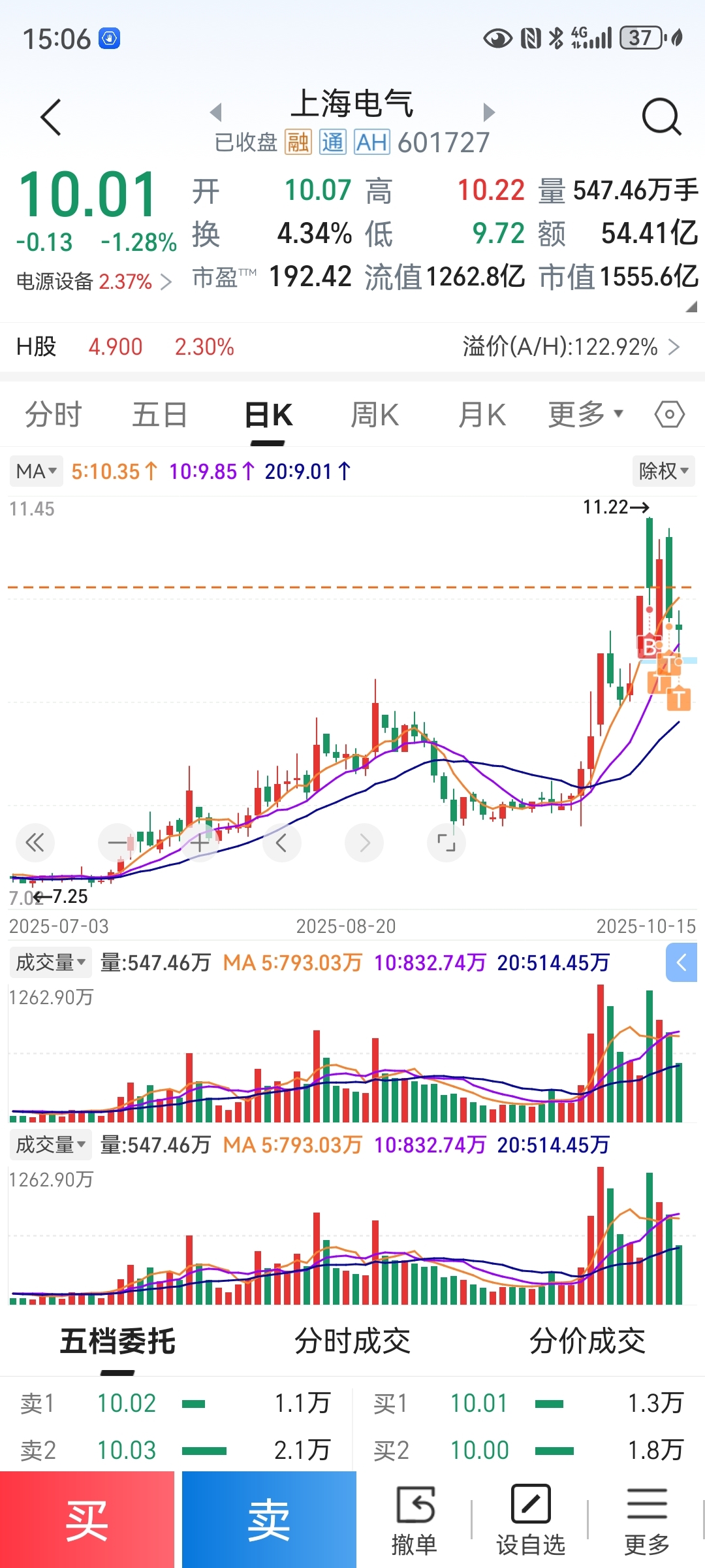 $上海电气(SH601727)$ 全仓浮亏5.5个点,这个礼拜不知道能不能挣钱?
