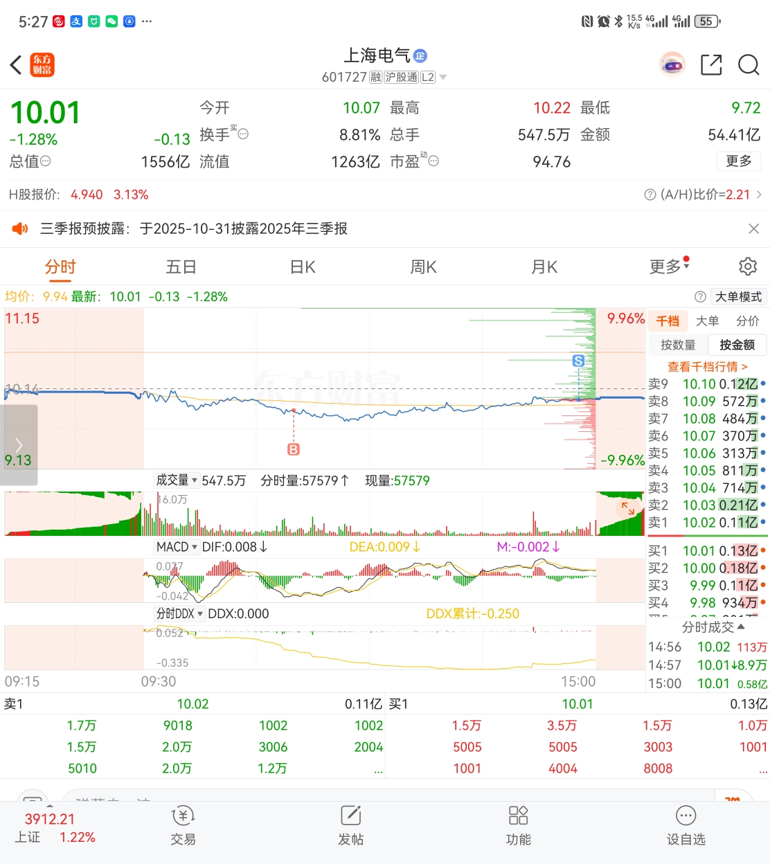 $上海电气(SH601727)$ 任何票,只要当天有波动就不会亏
