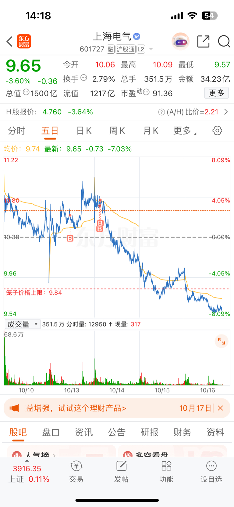 $上海电气(SH601727)$ 真服了 买啥啥跌,主力追着我杀