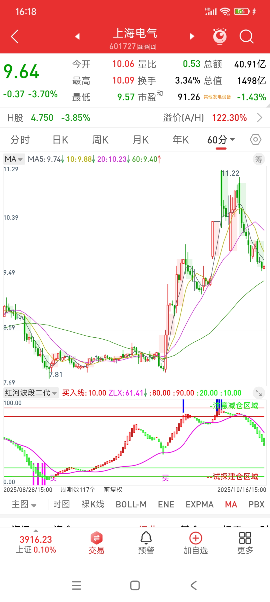 $上海电气(SH601727)$ 昨天是不是说了60分钟绿柱延续要继续看了?很简单的一件事,而且一目了然,绿柱不停,下行不止,绿柱拉长,崩溃不止,继续