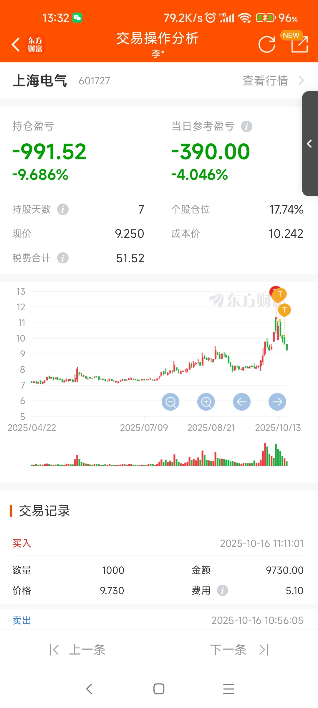 $上海电气(SH601727)$ 就买了10手,都能亏我十个点,气死我