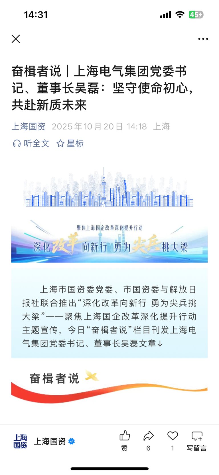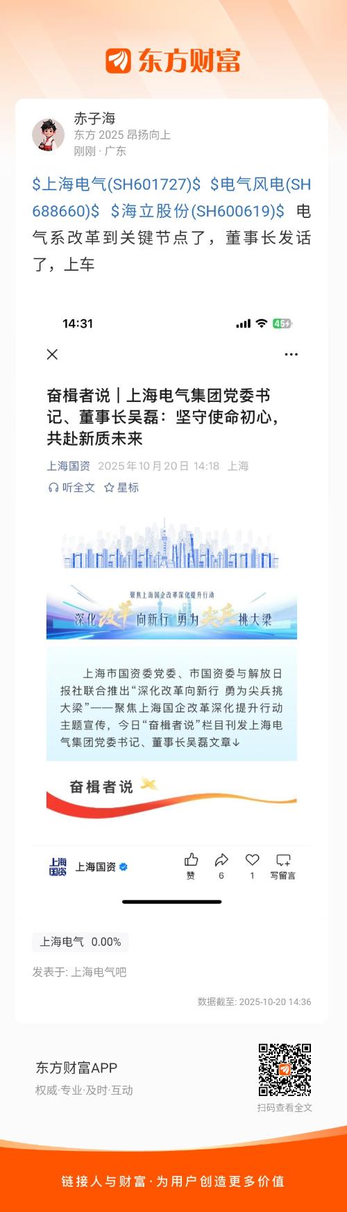 $上海电气(SH601727)$ $电气风电(SH688660)$ $海立股份(SH600619)$ 电气系改革到关键节点了,董事长发话了,上车
