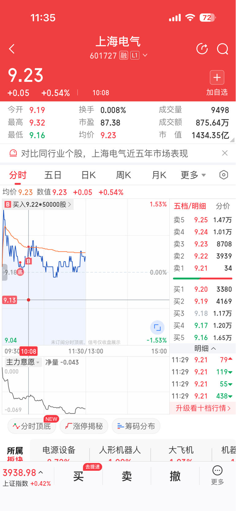 $上海电气(SH601727)$ 一群韭菜,老子今天继续加仓,仔细看看我的一笔交易多少股,这点钱在资本市场算毛线,但是我是实实在在的买卖