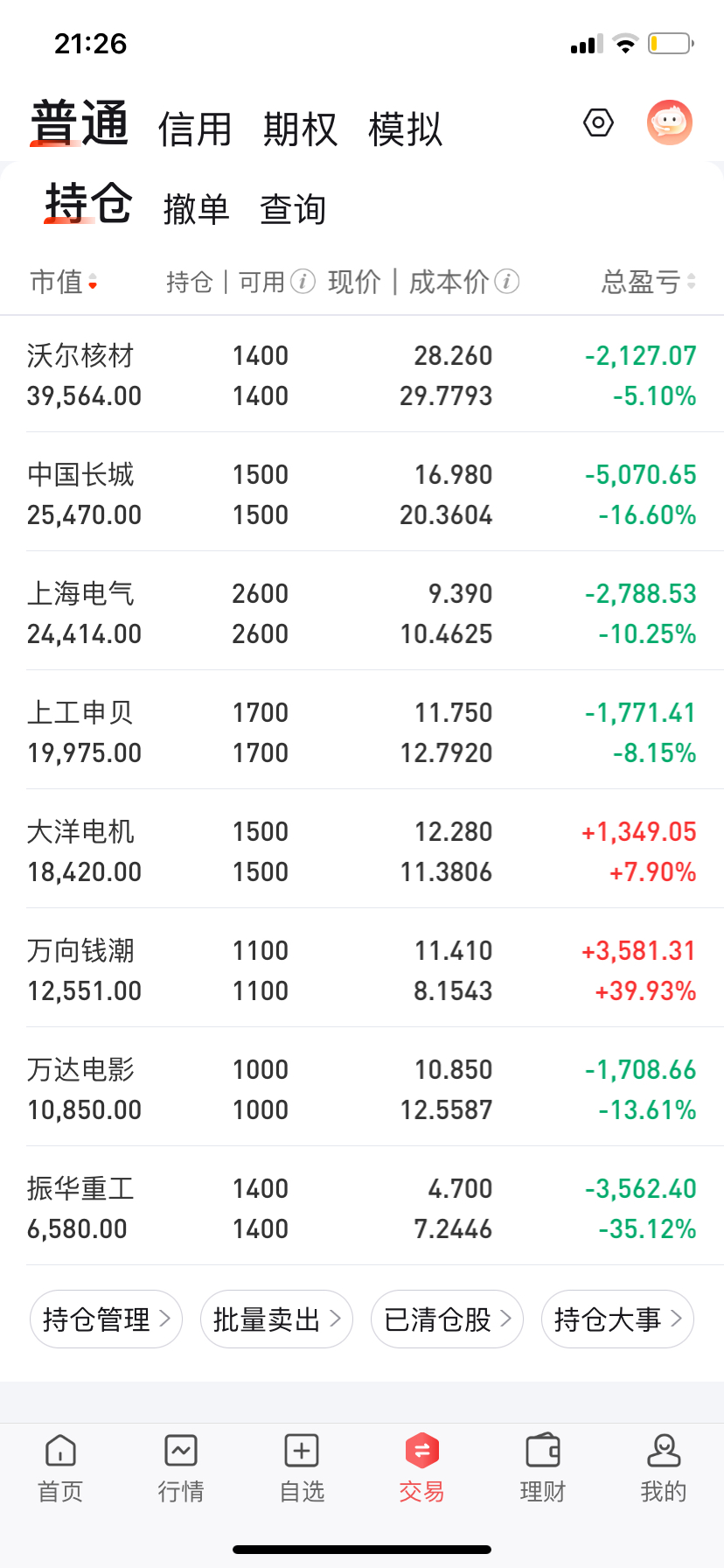 $上海电气(SH601727)$ 亏成这样,还能解套吗?沃尔核材业绩那么好,今天暴力洗盘,暴跌近7个点,毫无人性可言