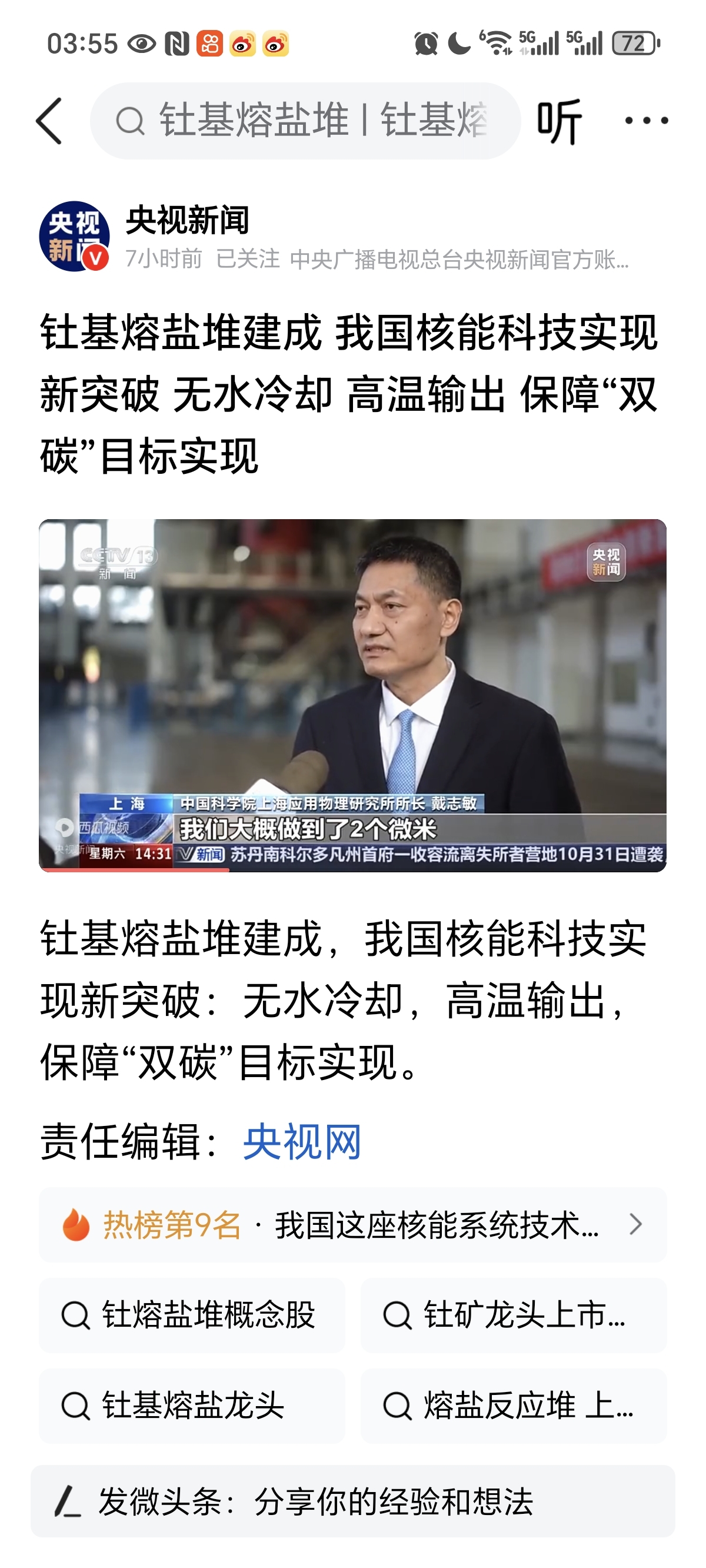 有点东西啊,钍基熔盐堆央视新闻播了两分钟。