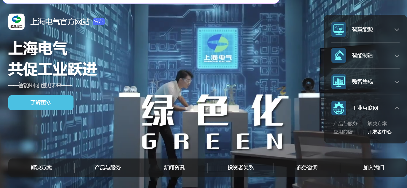 今年上海电气官网变化了三四回,这次,未来的业务类型更清楚了。其中“半导体设备”非常明了!