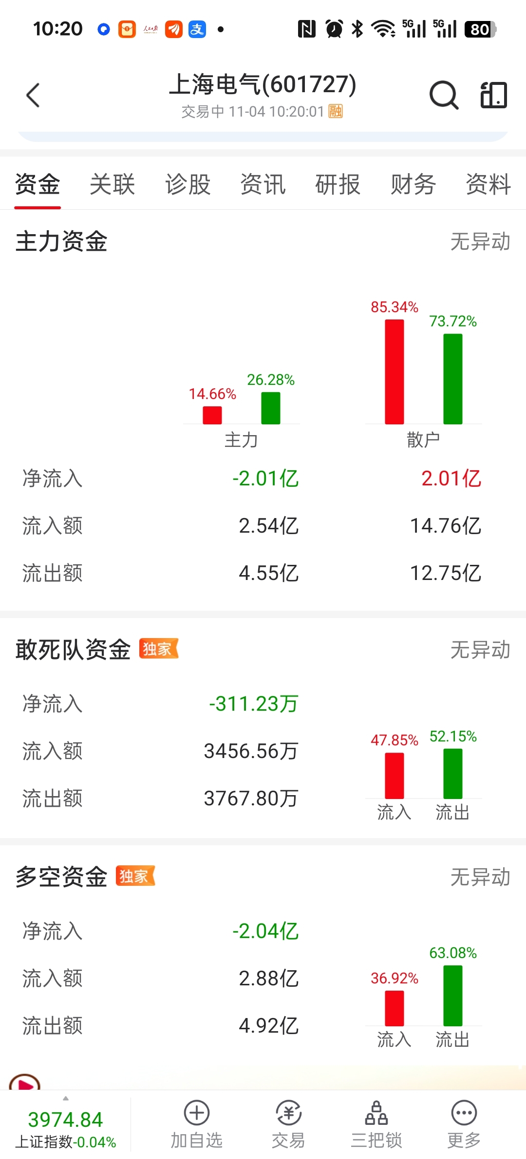 $上海电气(SH601727)$ 我测啊,主力跑俩亿了,我57刚买的,直接大跌啊