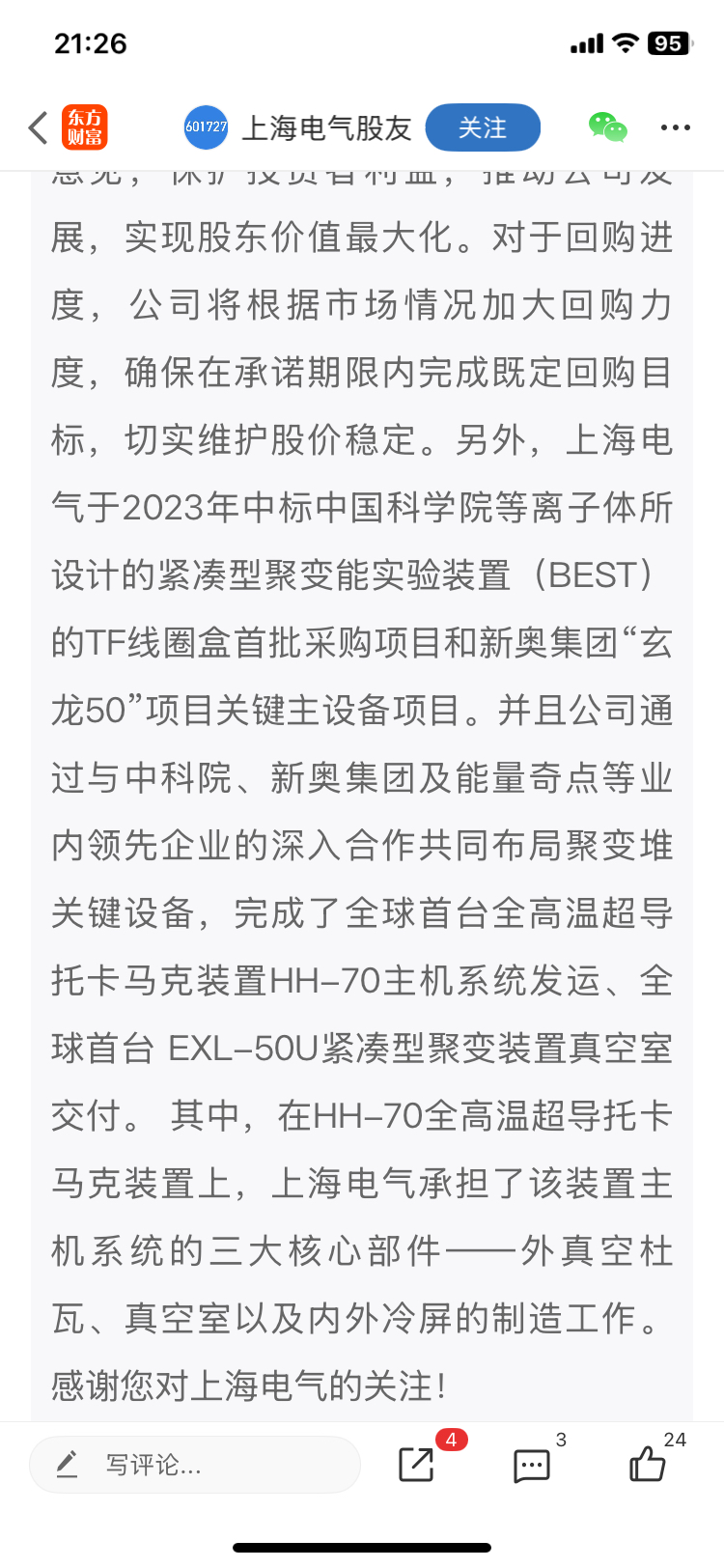 $上海电气(SH601727)$ 真正的核聚变优质股是经得起时间检验的,好饭不怕晚!坚定信念。