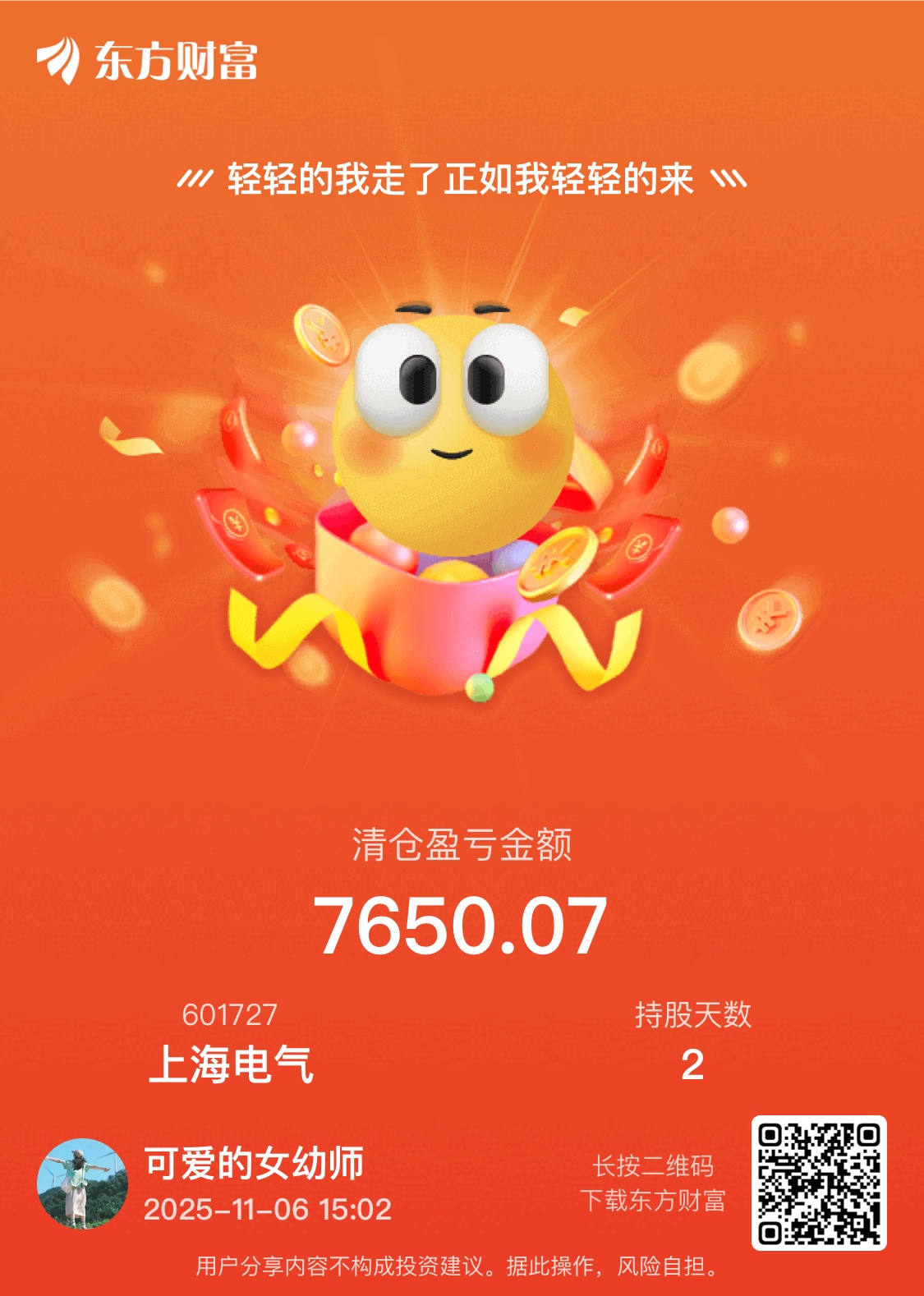 $上海电气(SH601727)$ 吃口肉走了,大盘涨的怕人,明天再来吃