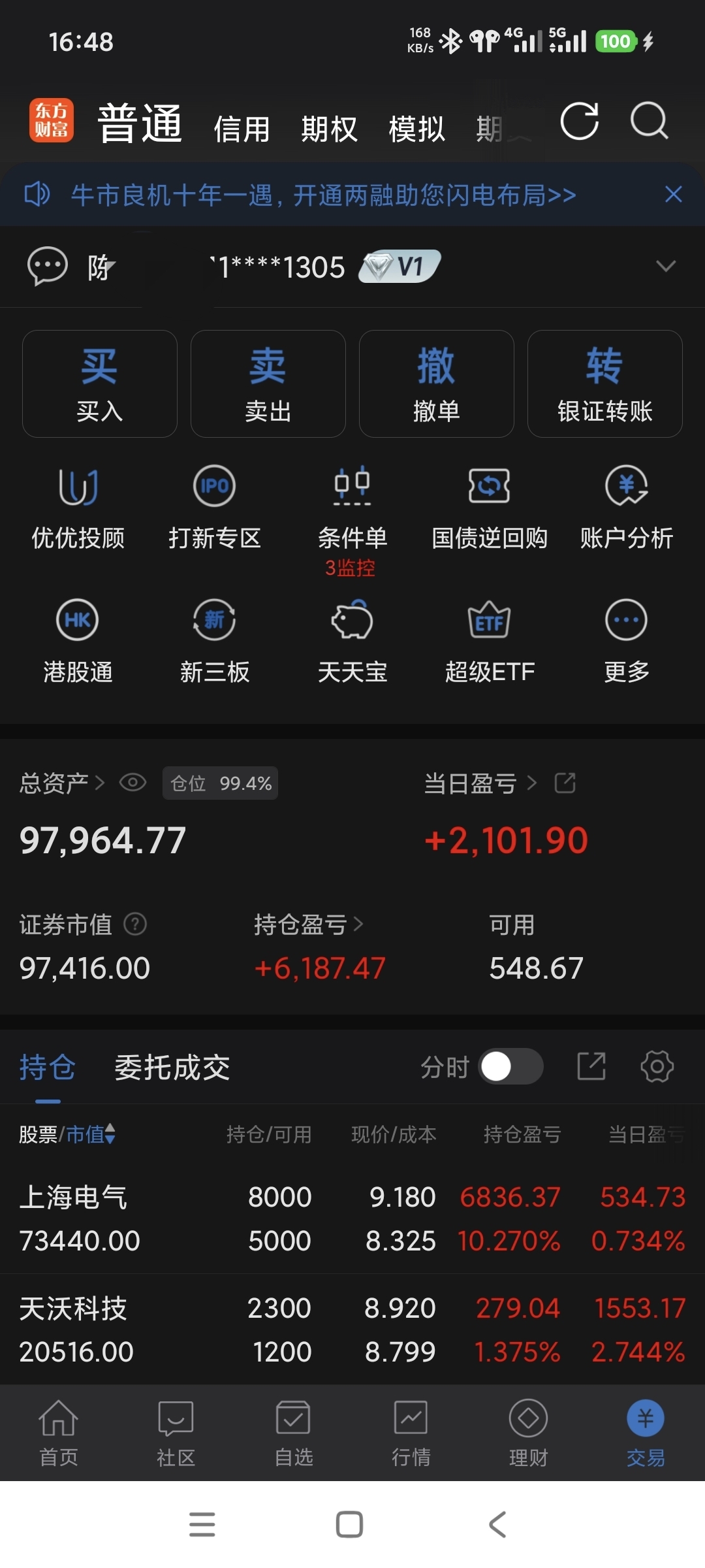 下午量化大人下午反人性没有拉一下再回调,只好8.89买入1100股天沃科技做了个