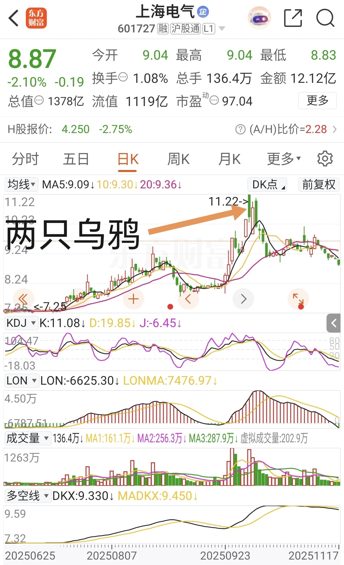 $上海电气(SH601727)$ 这是不是两只乌鸦形态,据说两只乌鸦会长久大跌!