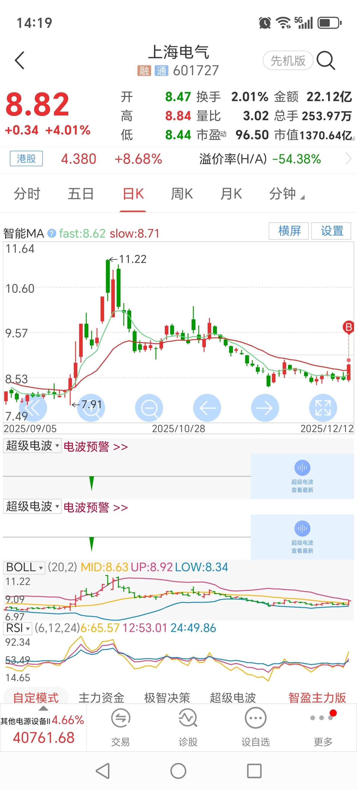 $上海电气(SH601727)$ 从8.83拉到涨停价9.33还有五角也就是五十分钱,现在发力一分钟涨一分到收盘不暴力拉升也干不到涨停啊
