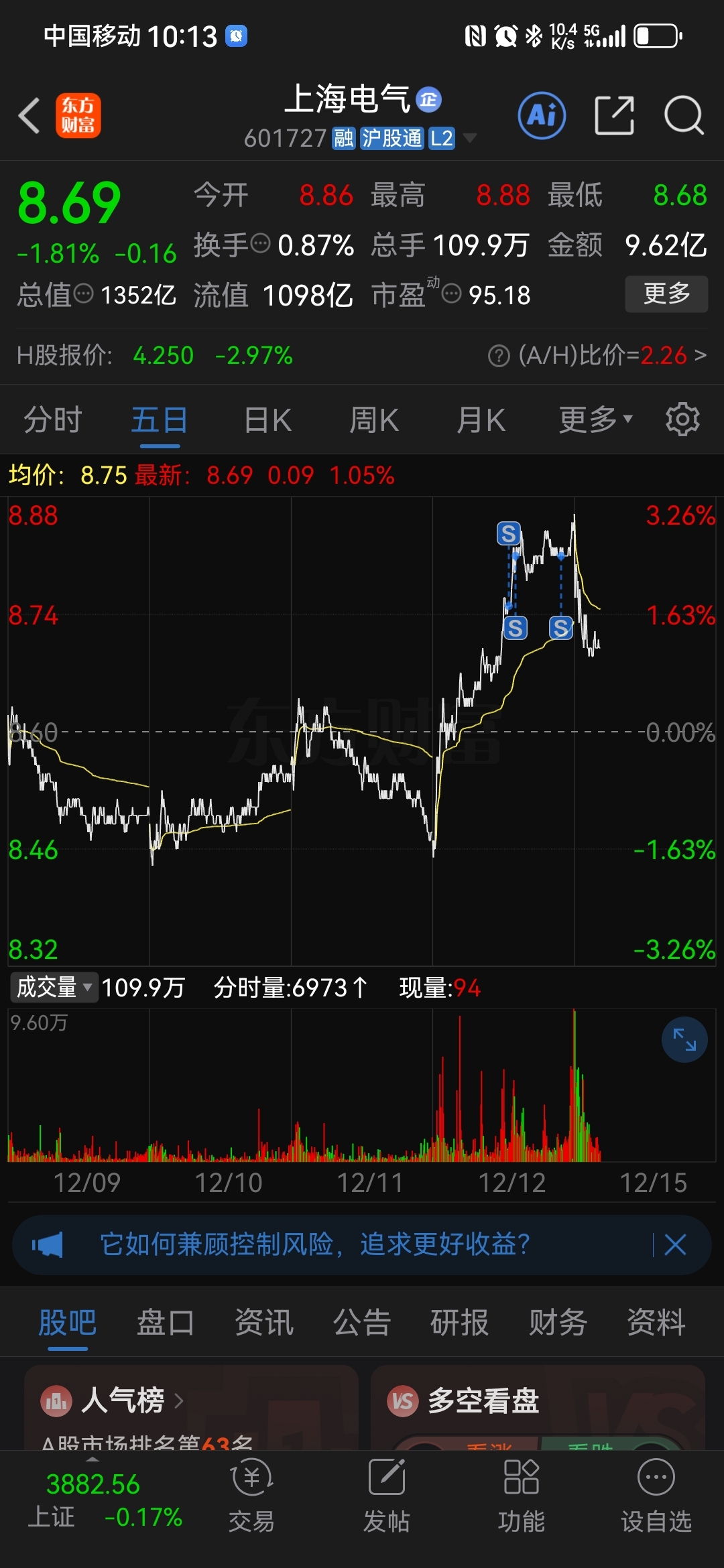 $上海电气(SH601727)$ 跑的快呀