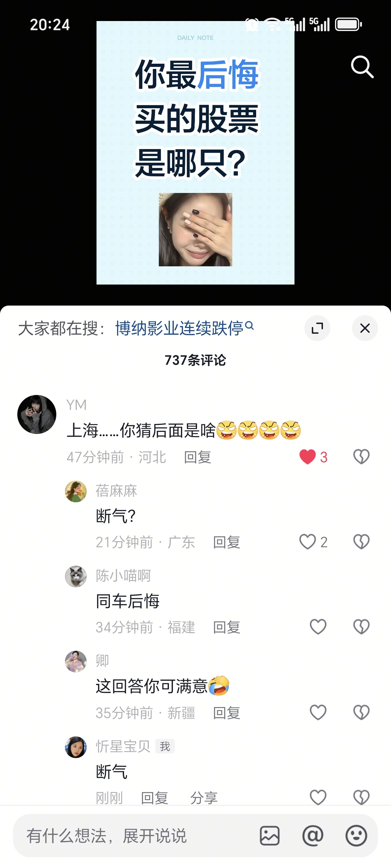 郑重声明:用户在财富号/股吧/博客等社区发表的所有信息(包括但不限于文字、视频、音频、数据及图表)仅代表个人观点,与本网站立场无关,不对您构成任何投资建议,据此操作风险自担。请勿相信代客理财、免费荐股和炒股培训等宣传内容,远离非法证券活动。请勿添加发言用户的手机号码、公众号、微博、微信及QQ等信息,谨防上当受骗!