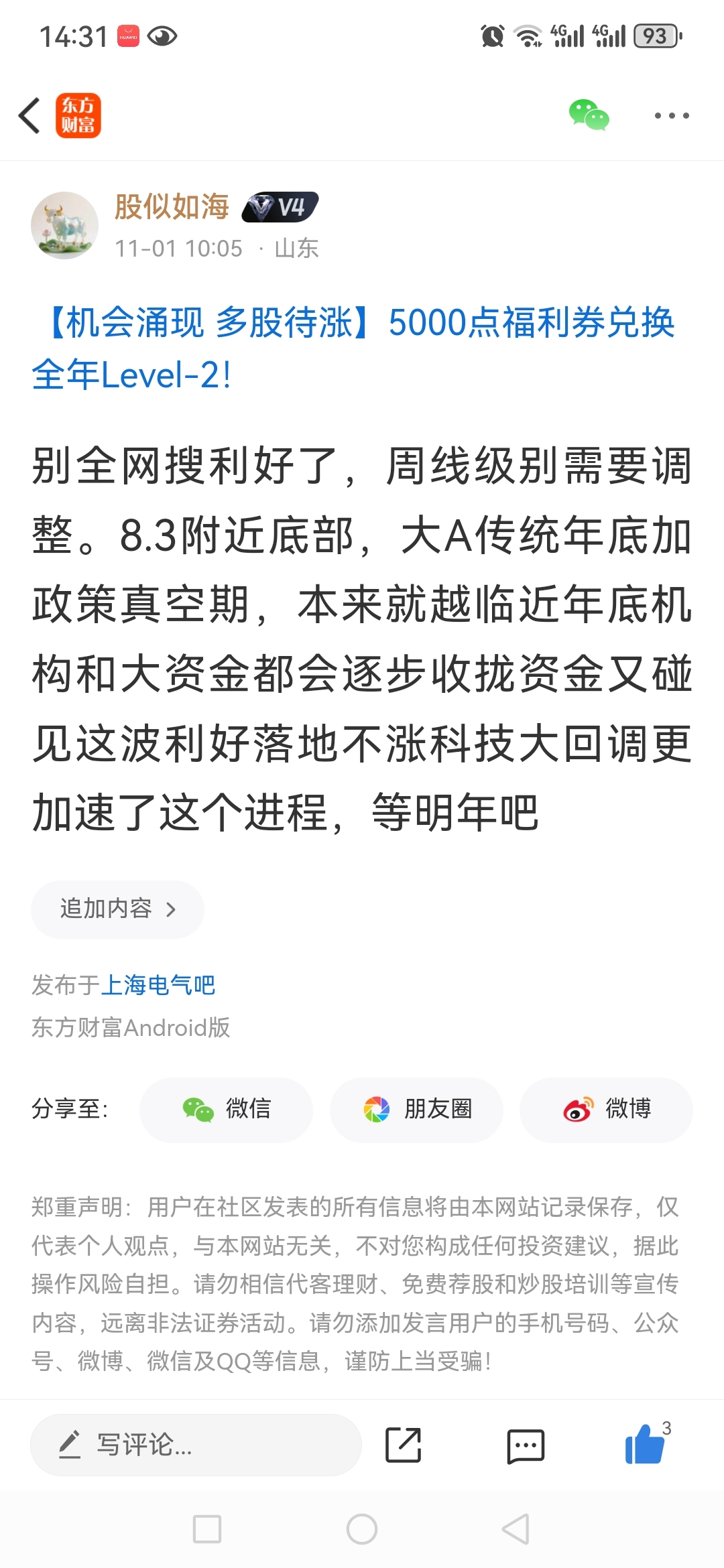 温馨提示: 1.根据《证券法》规定,禁止编造、传播虚假信息或者误导性信息,扰乱证券市场;2.用户在本社区发表的所有资料、言论等仅代表个人观点,与本网站立场无关,不对您构成任何投资建议。用户应基于自己的独立判断,自行决定证券投资并承担相应风险。《东方财富社区管理规定》