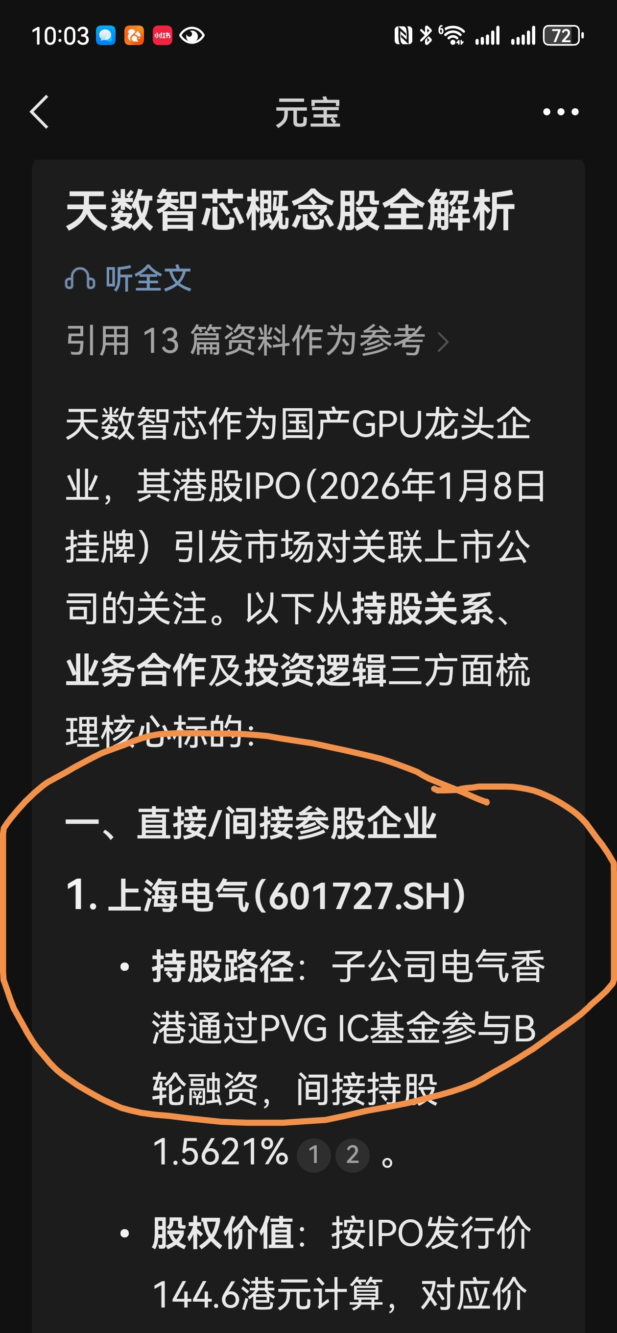 $上海电气(SH601727)$ 明天上海电气参股的国产GPU四小龙 天数智芯 港股上市交易!