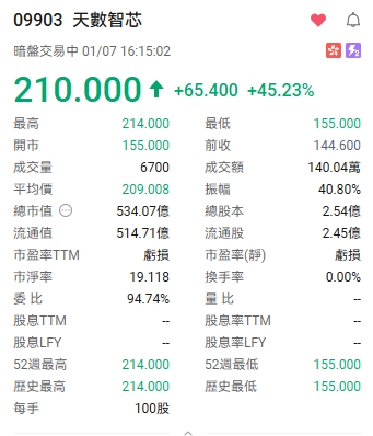 参股的天数智芯暗盘暴涨45%,明天开盘估计直奔100%