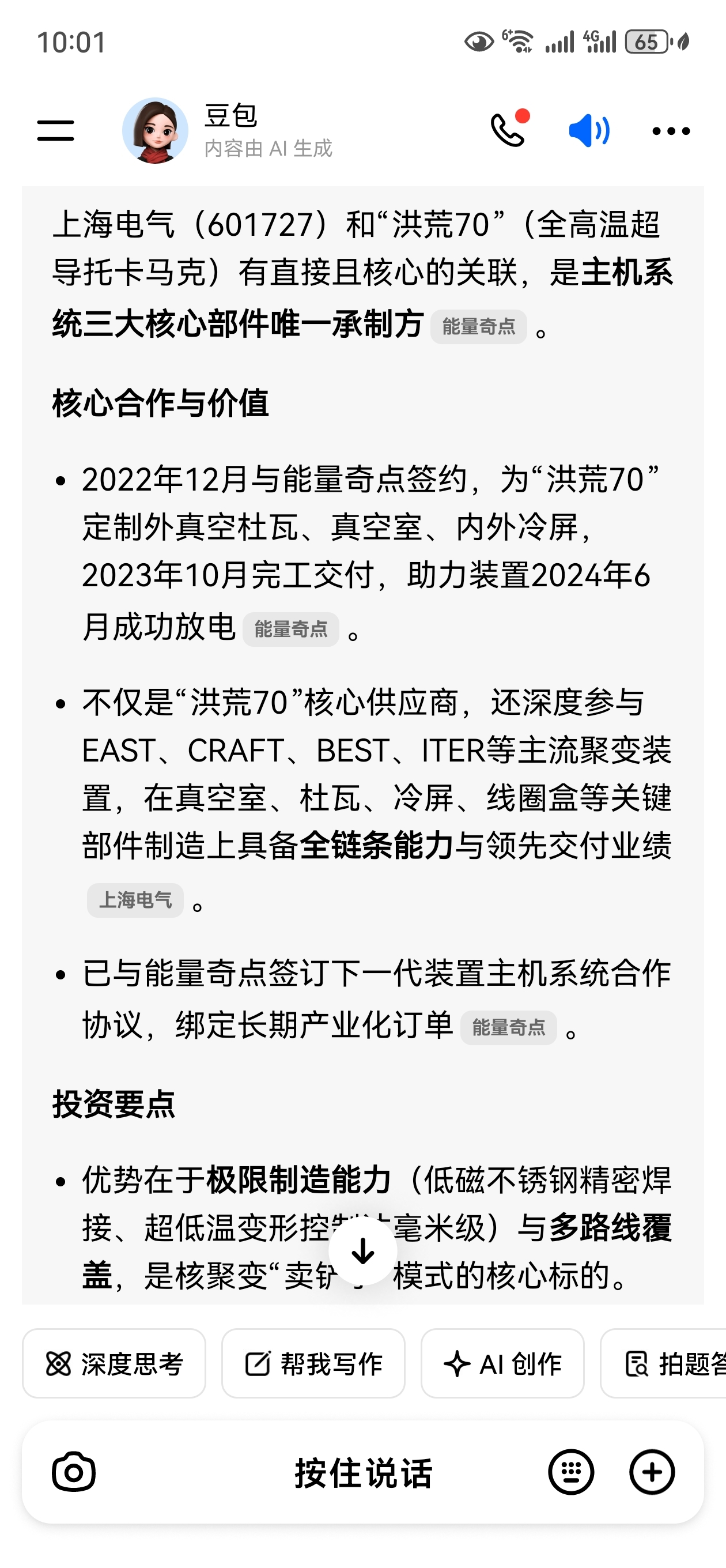 $上海电气(SH601727)$ 洪荒70核心供应商,与能量奇点关系密切