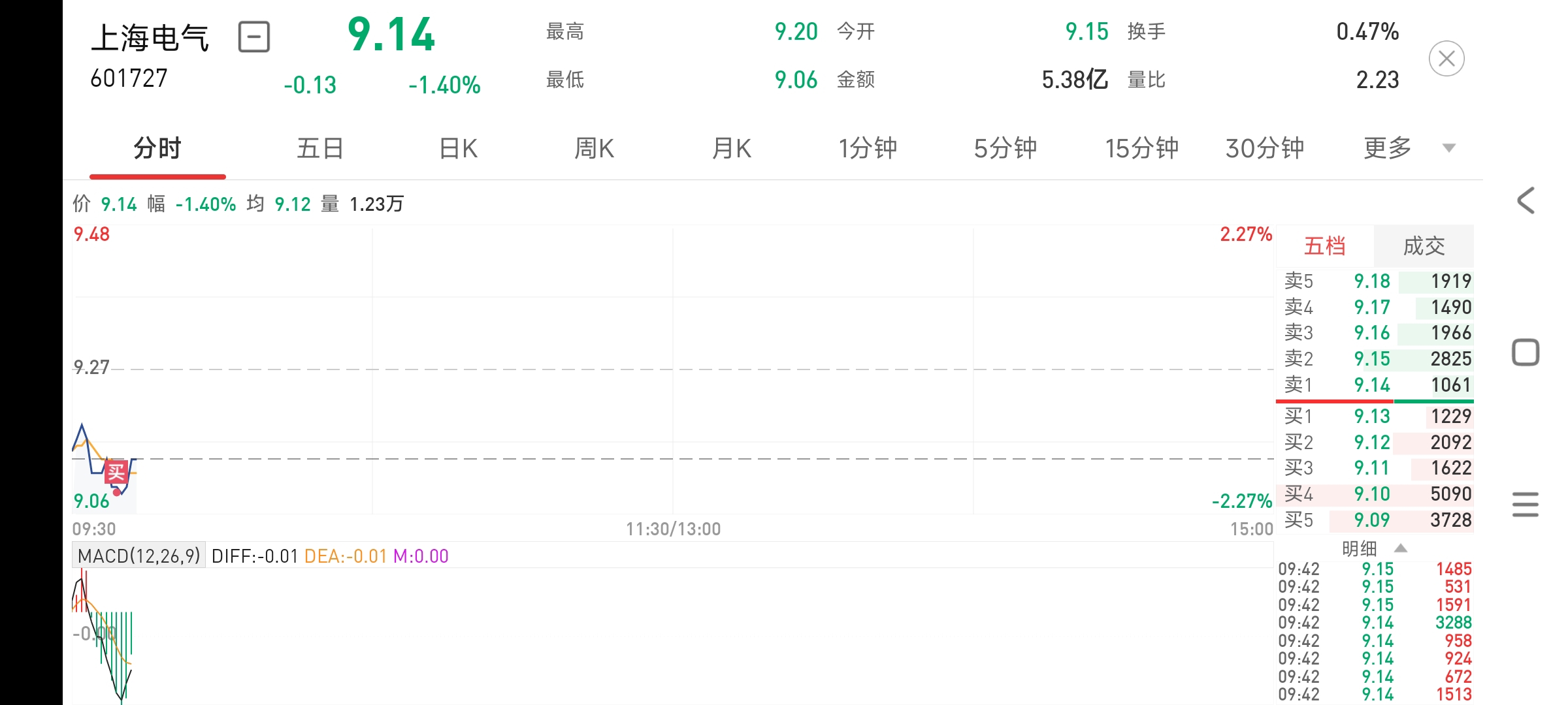 $上海电气(SH601727)$ 大家快点买入,T他,只要T的好,下跌也能挣钱,这不6分钱差价已经到手。