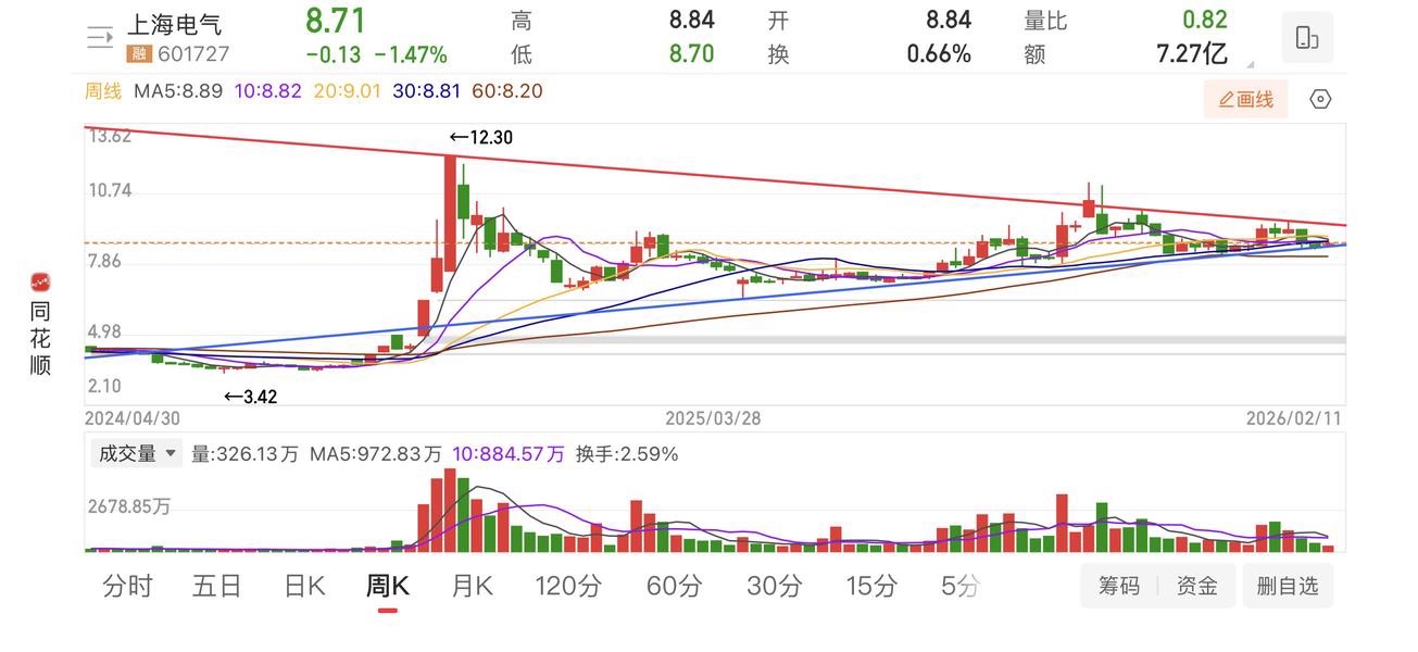 $上海电气(SH601727)$ 勾庄操盘真厉害,从24年9月开始,这票一直在上升趋势,什么时候看能不能跌到8.2,梭哈干。