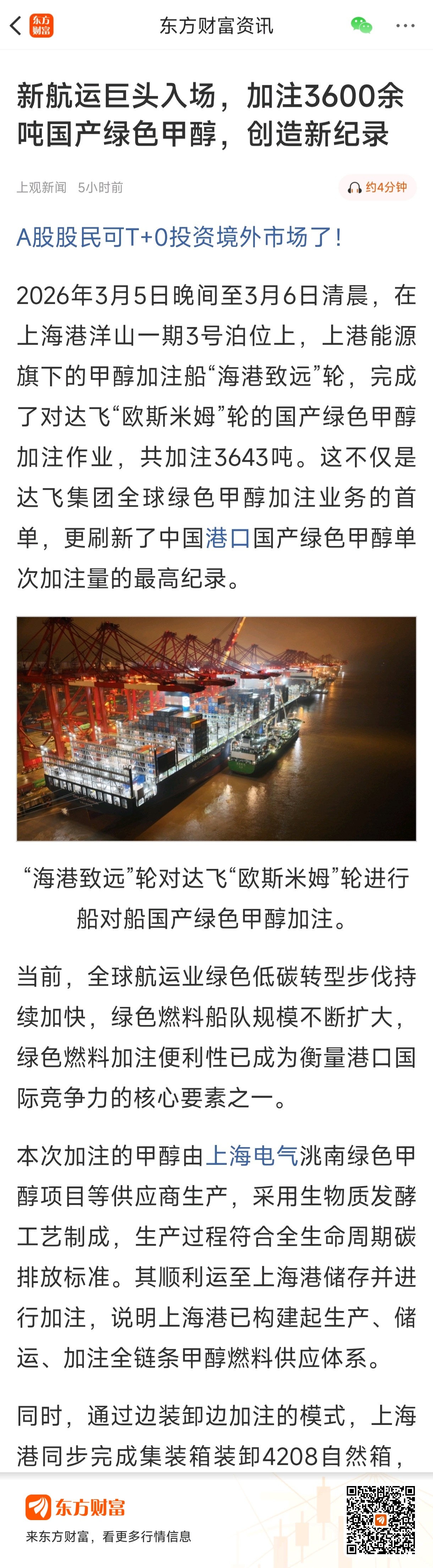 $上海电气(SH601727)$ 为啥拉涨停。这个甲醇新闻被上港爆出来了