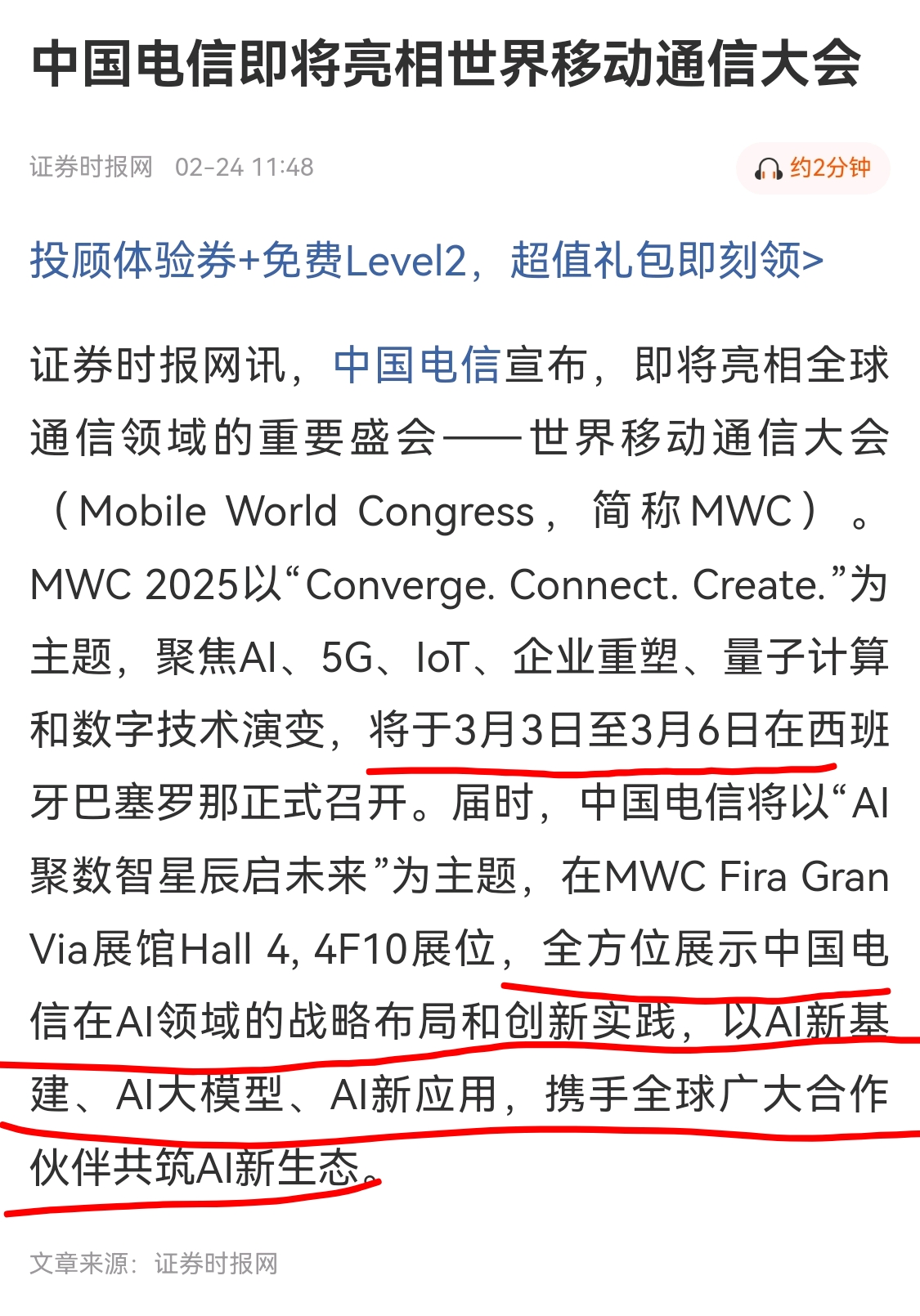 $中国电信(SH601728)$ 这几天会涨一波,下周一放大招