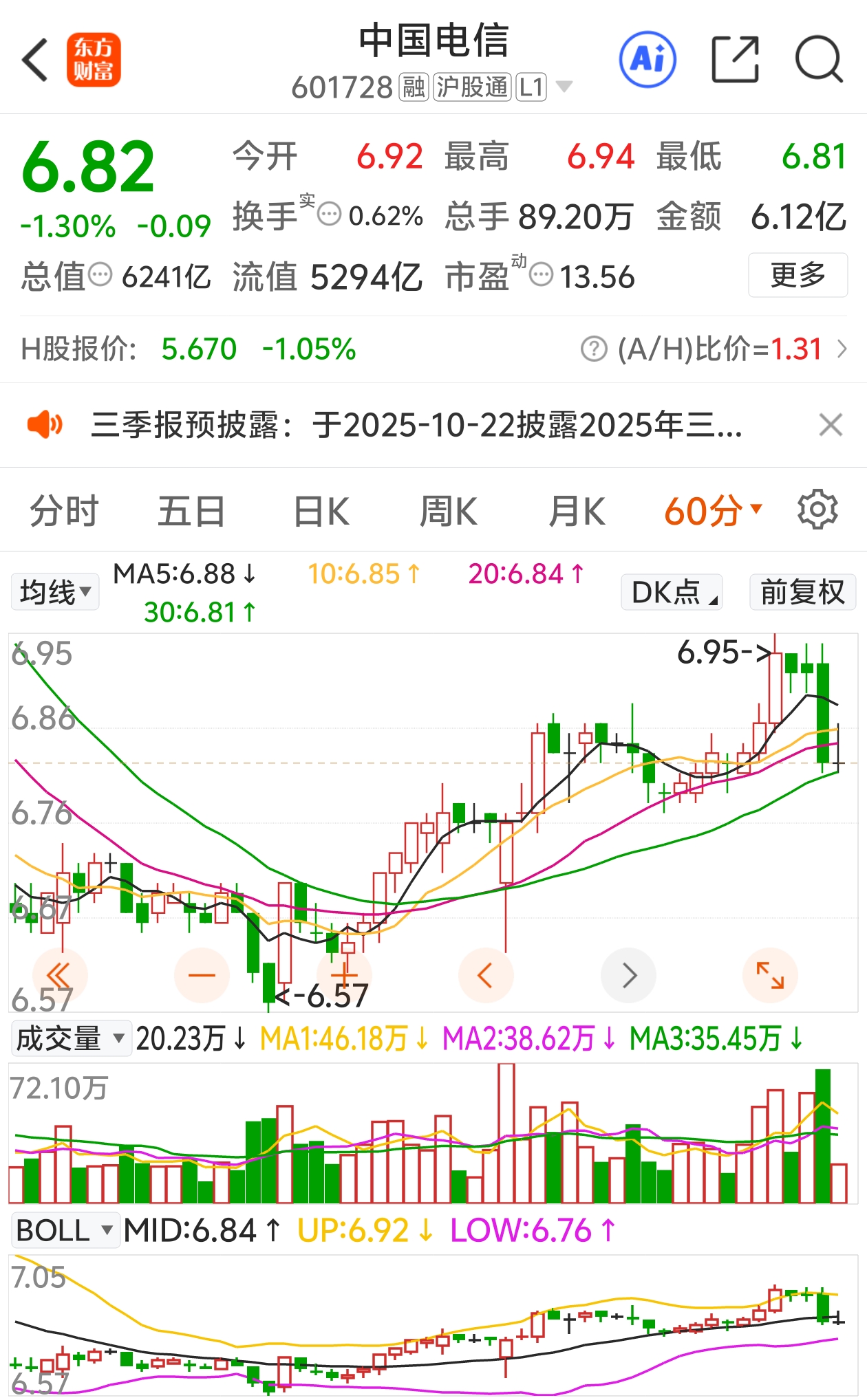 $中国电信(SH601728)$ 红利反弹结束,准备第二波下杀,准备买点科技玩玩