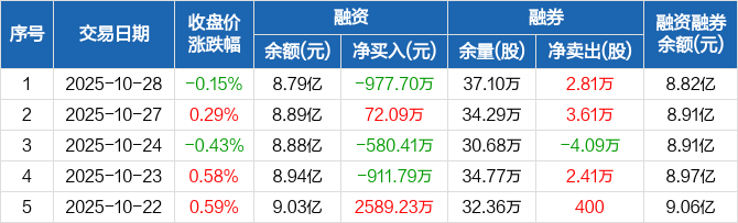 中国电信:融资净偿还977.7万元,融资余额8.79亿元(10-28)