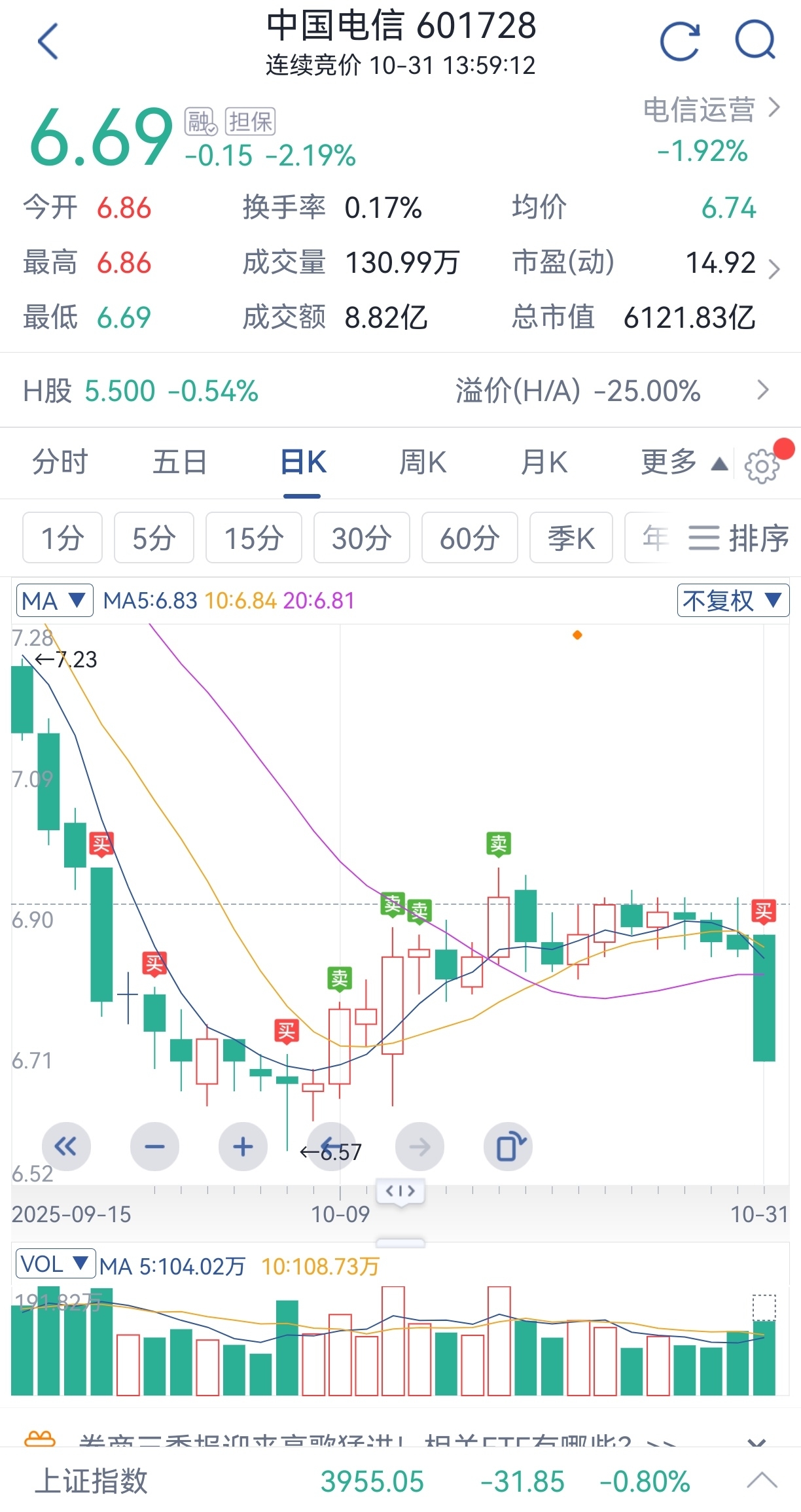 $中国电信(SH601728)$ 已经加仓