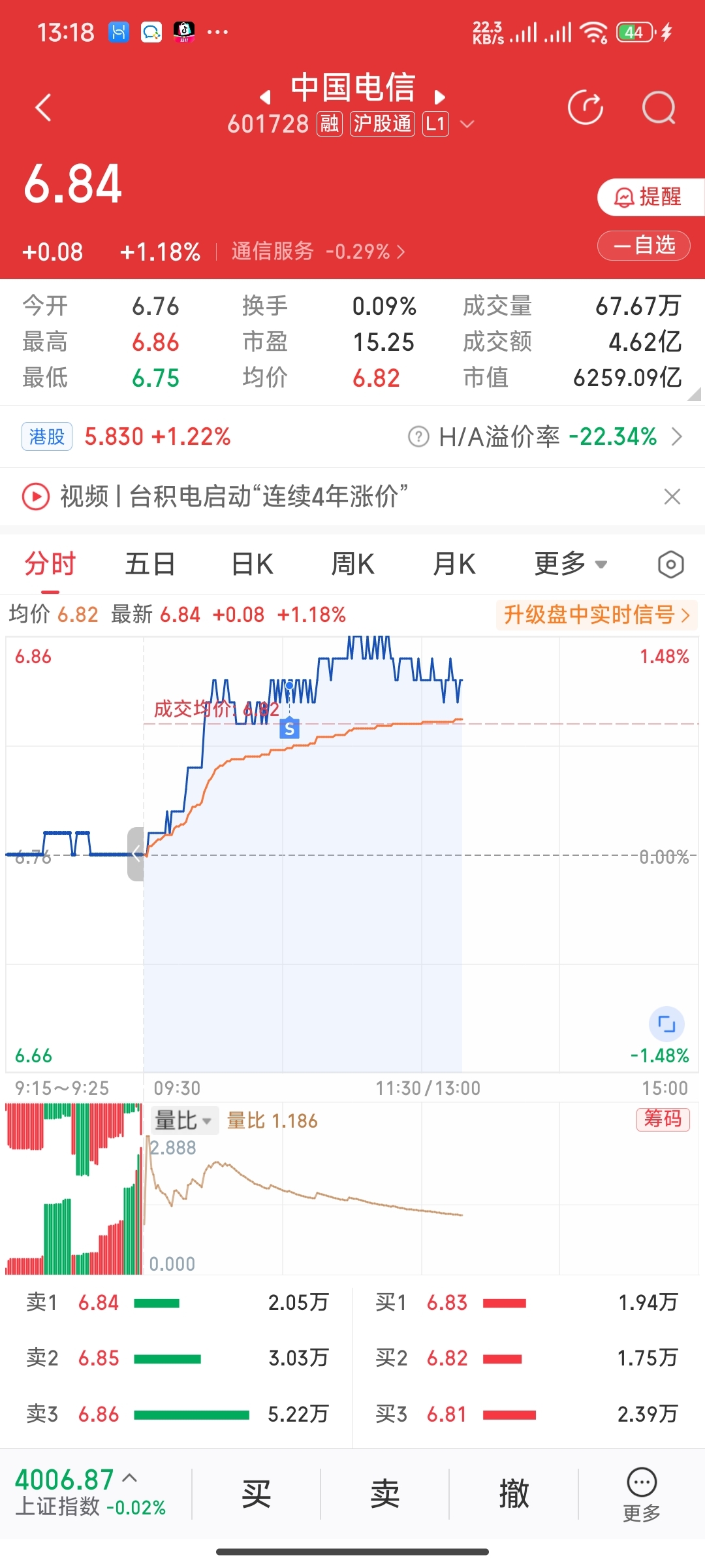 $中国电信(SH601728)$ 割肉走人,留下的发财