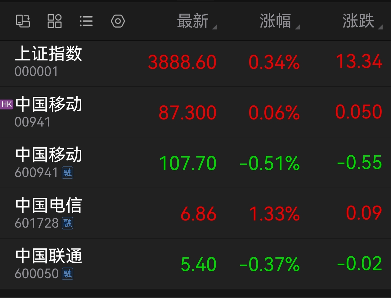 $中国电信(SH601728)$ 今天早盘中国电信走出独立行情,午后要挺住啊。