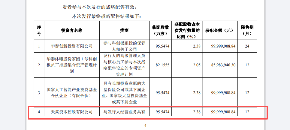 沐曦股份战略配售,电信全资子公司天翼资本控股有限公司认购2.38%的股份!