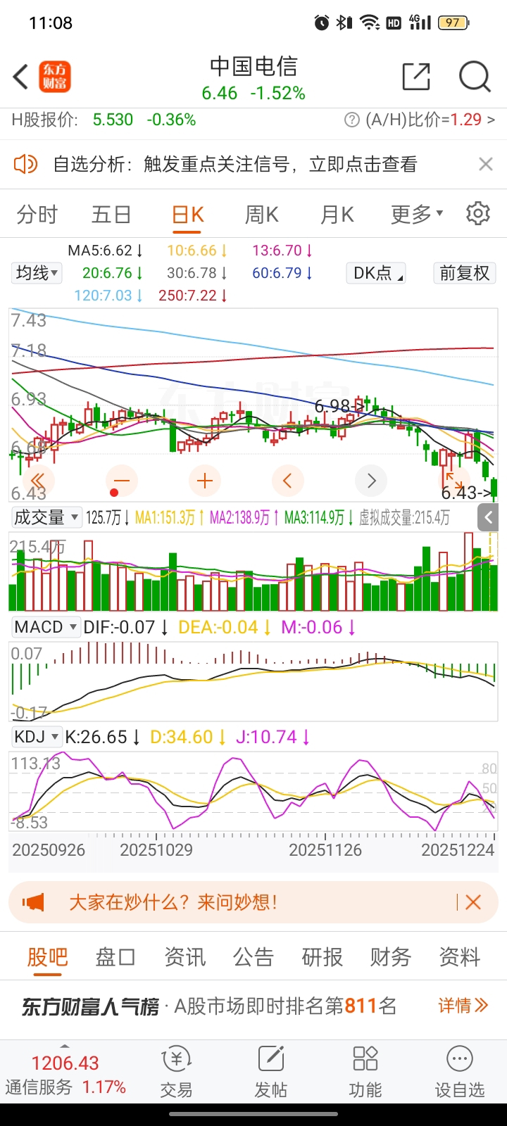 $中国电信(SH601728)$ 总有新低