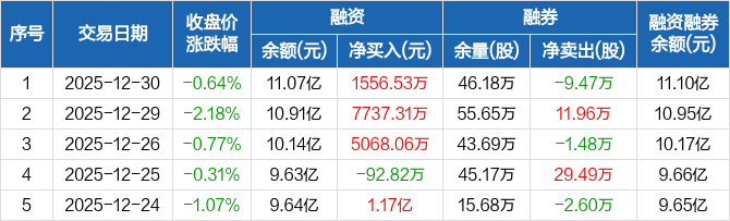 中国电信:融资余额11.07亿元,创近一年新高(12-30)