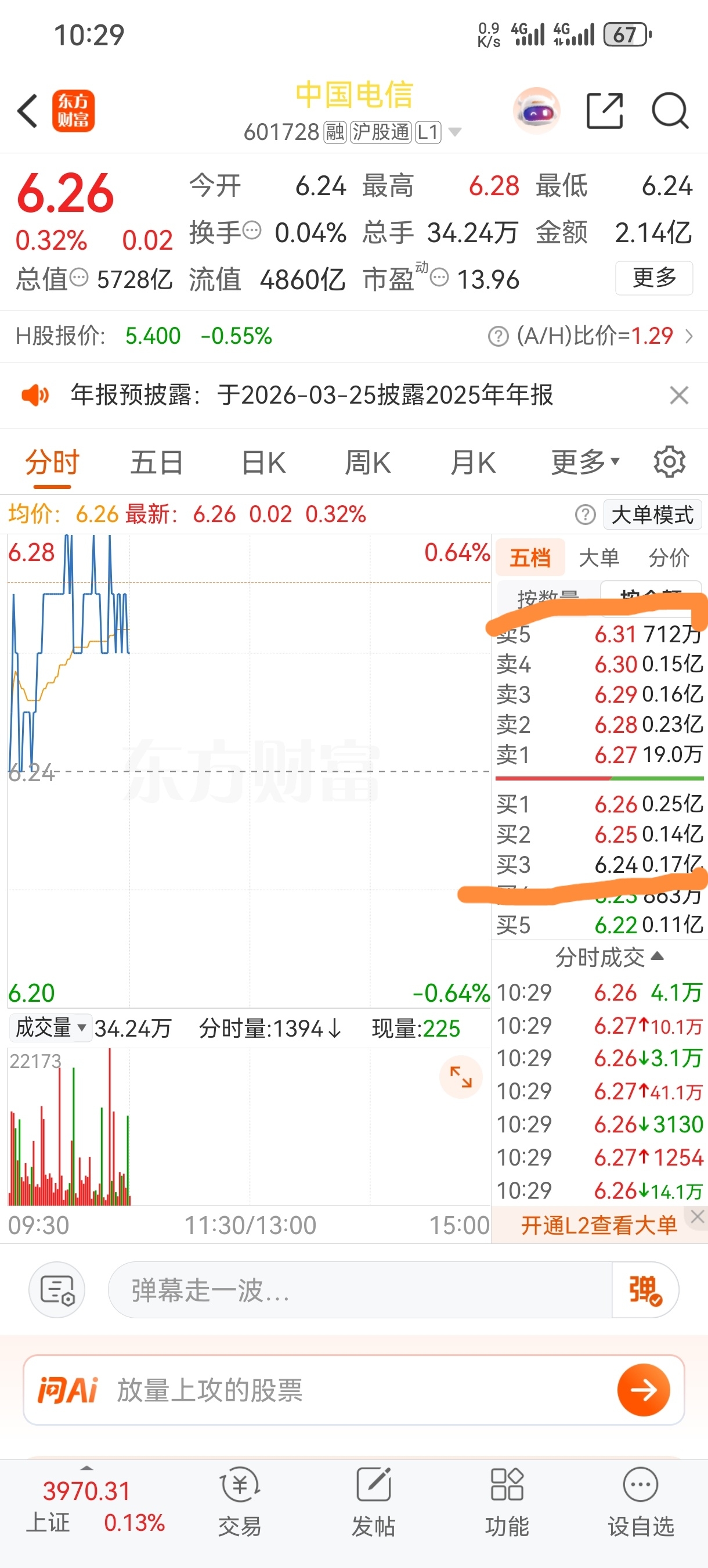 $中国电信(SH601728)$ 请大家闲钱炒股,逢低补仓,不要随便割肉。