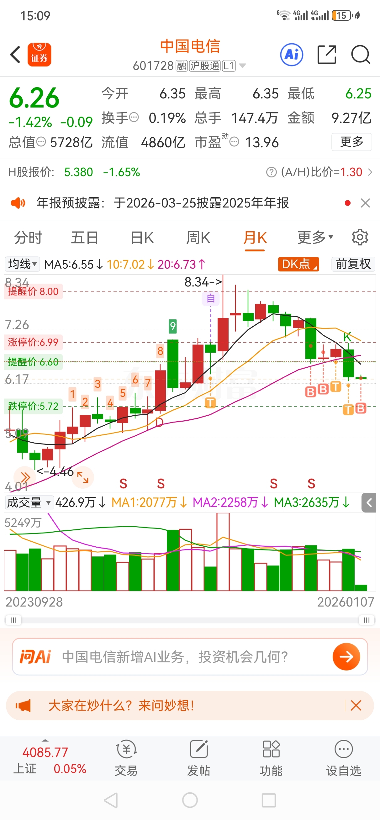 $中国电信(SH601728)$ 反正比命长,就买这一个股票,赌国运,市值肯定能上万亿的,只是时间的问题,上个月本来回本的,今天又加仓了,全部子弹梭哈了。